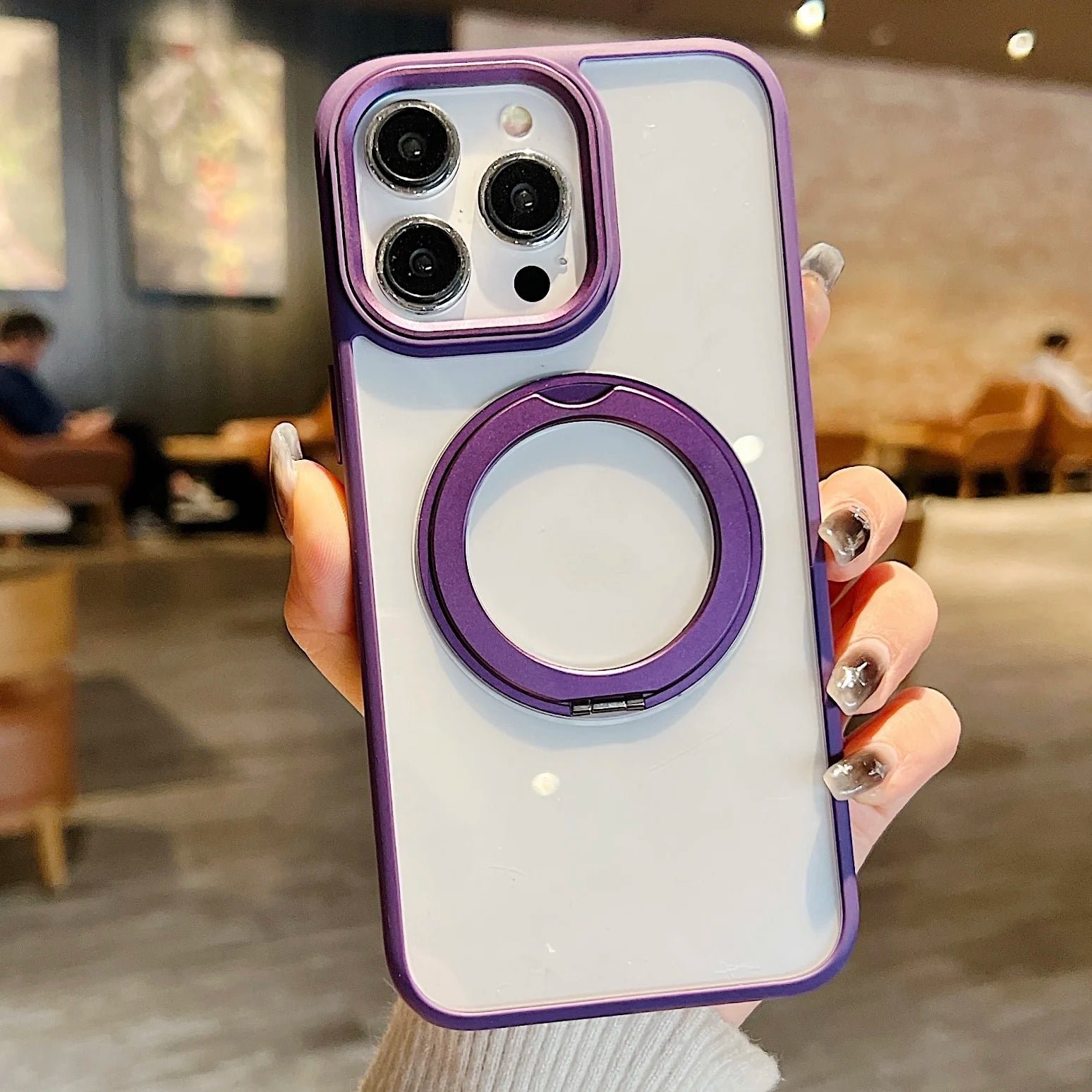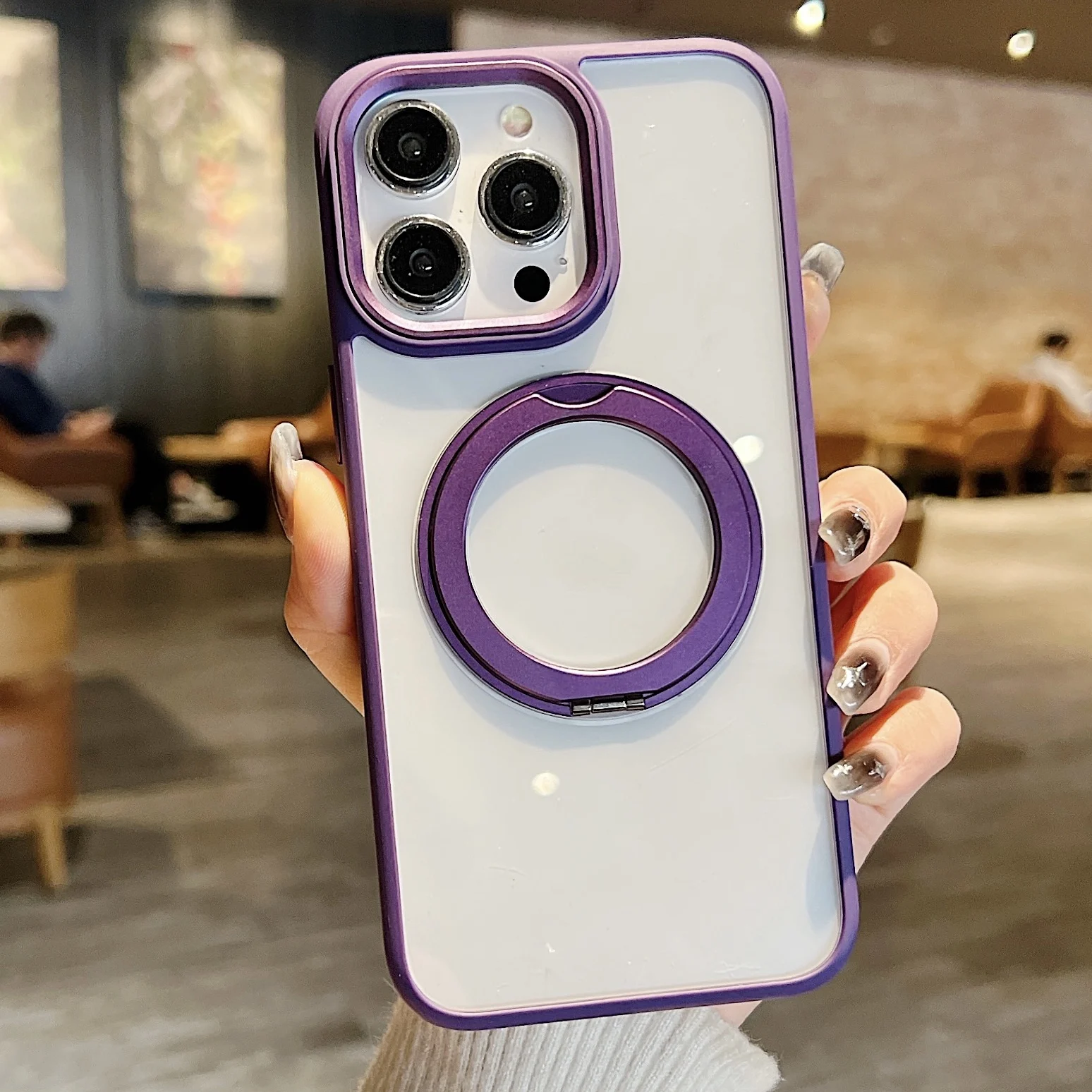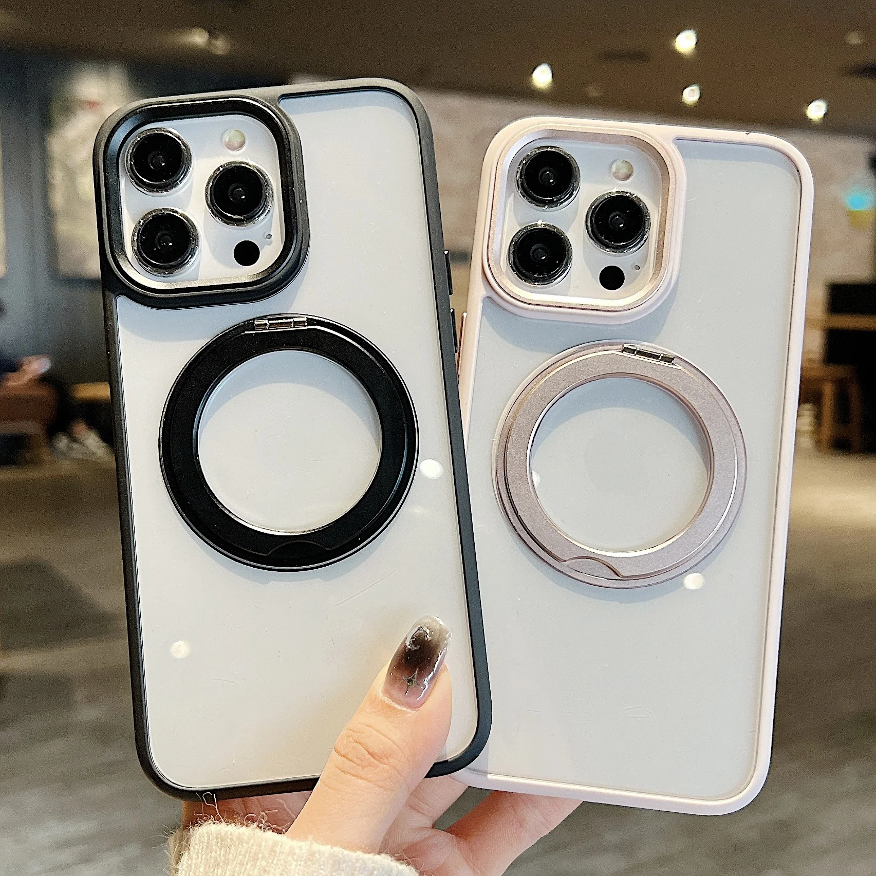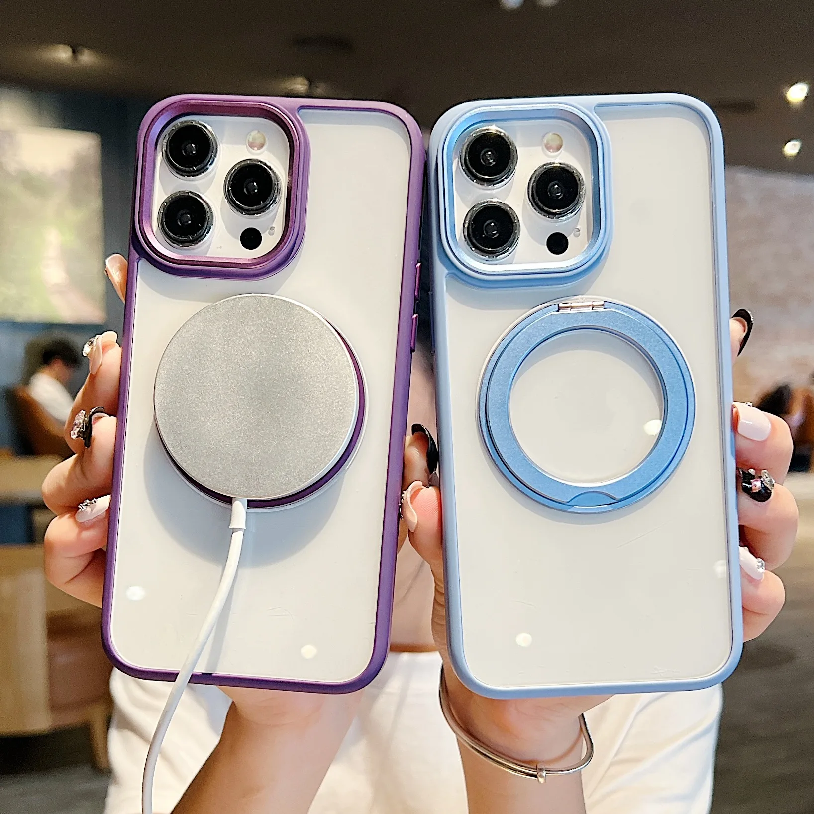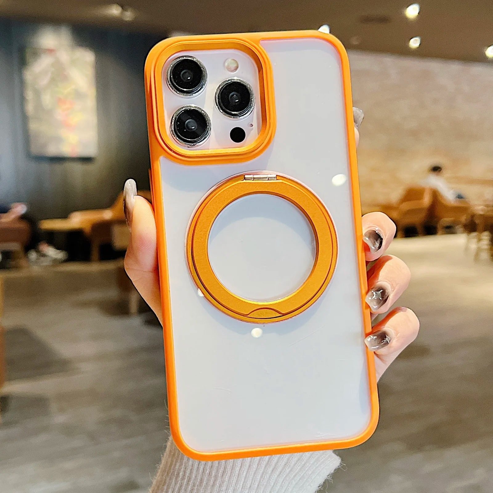 360°Rotating Magnetic Stand Phone Case For iPhone 13 14 15Pro Max Magsafe Wireless Charging Bracket Transparent Shockproof Cover