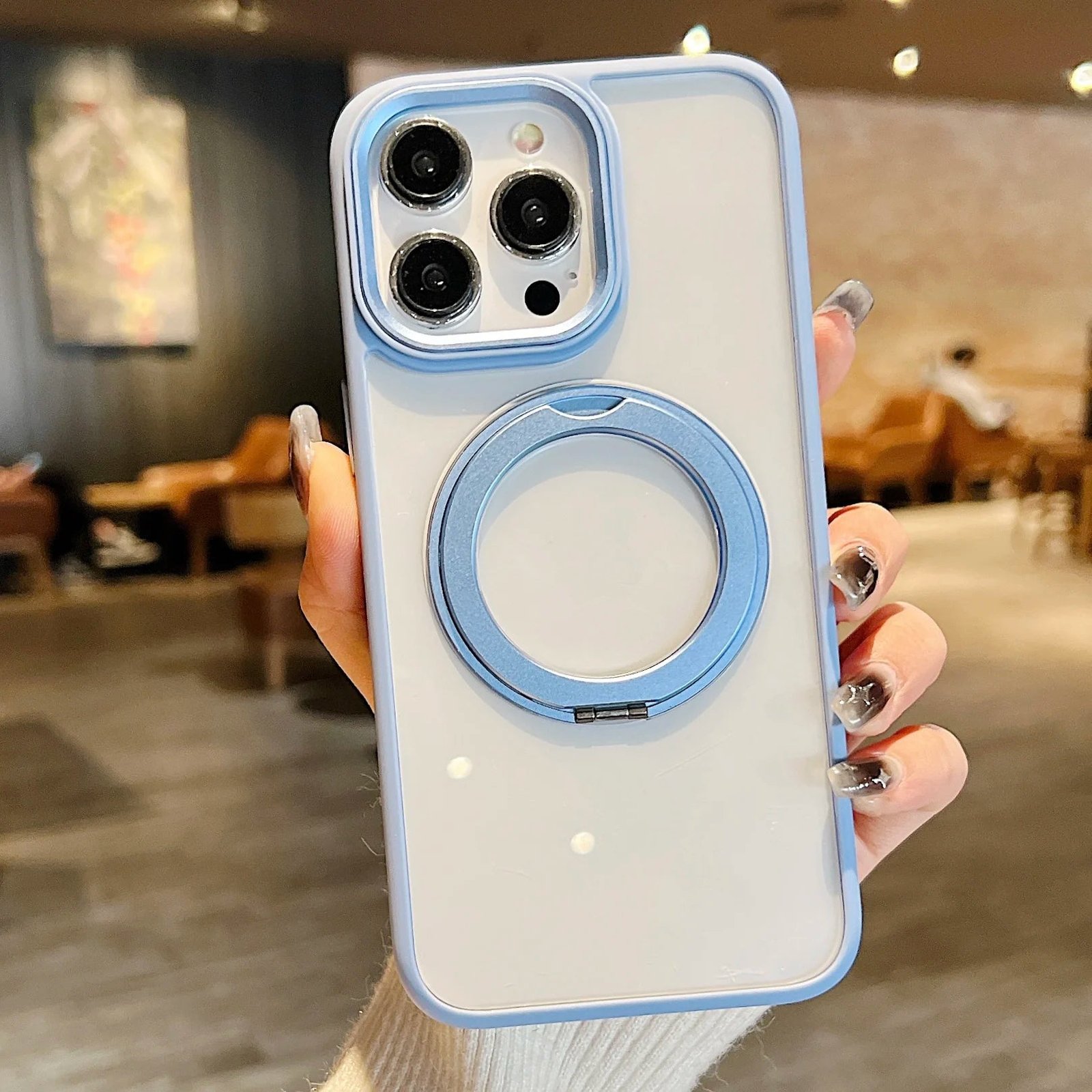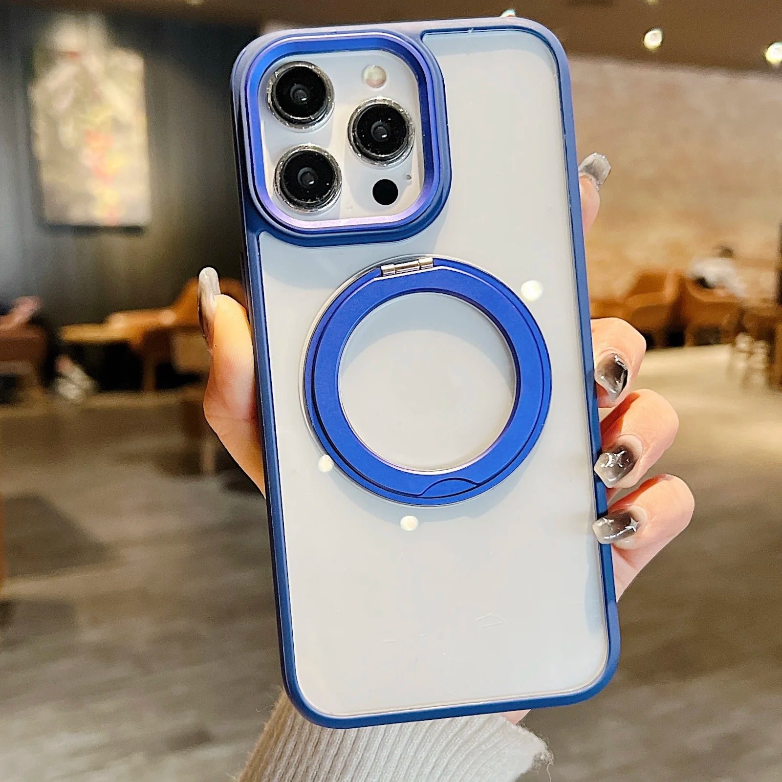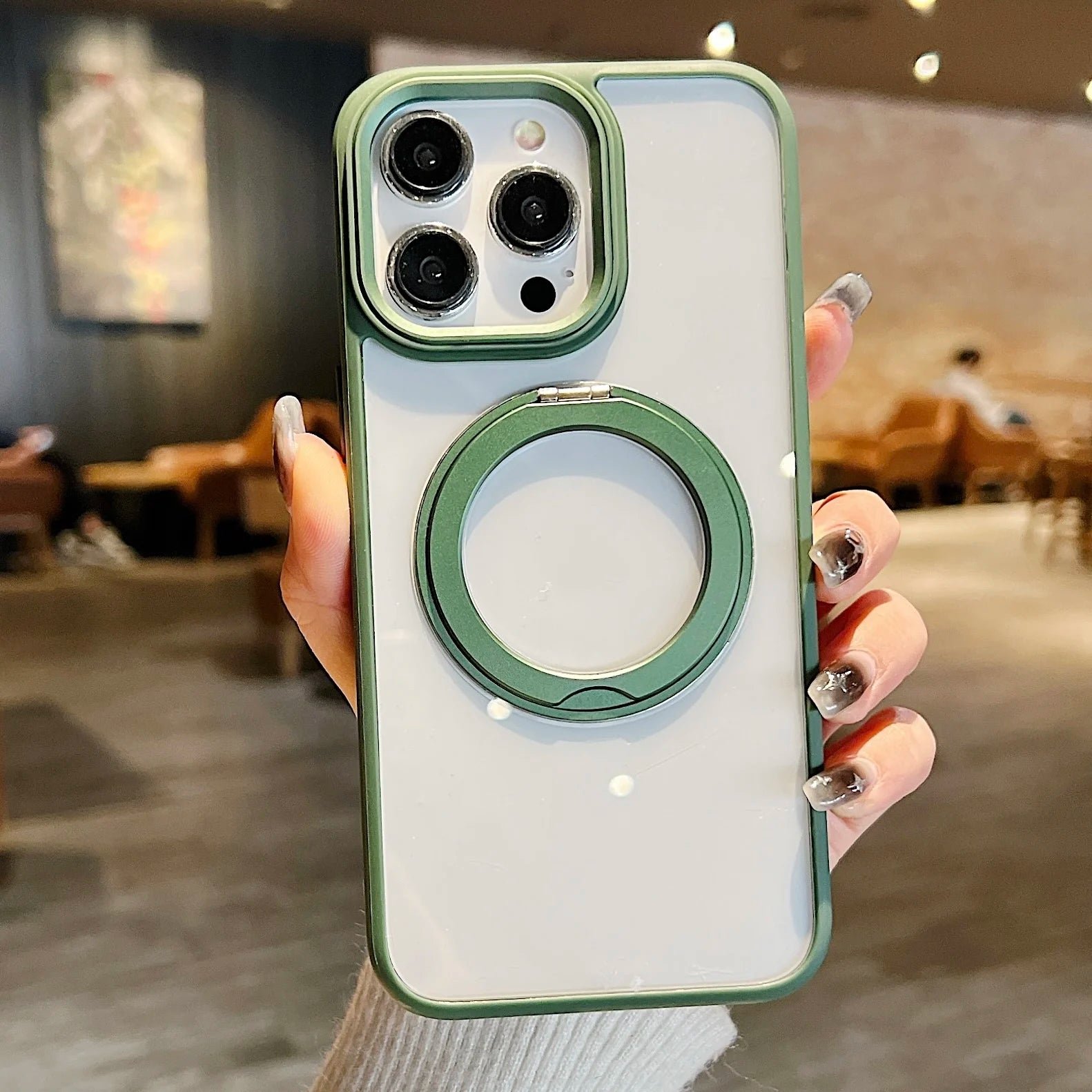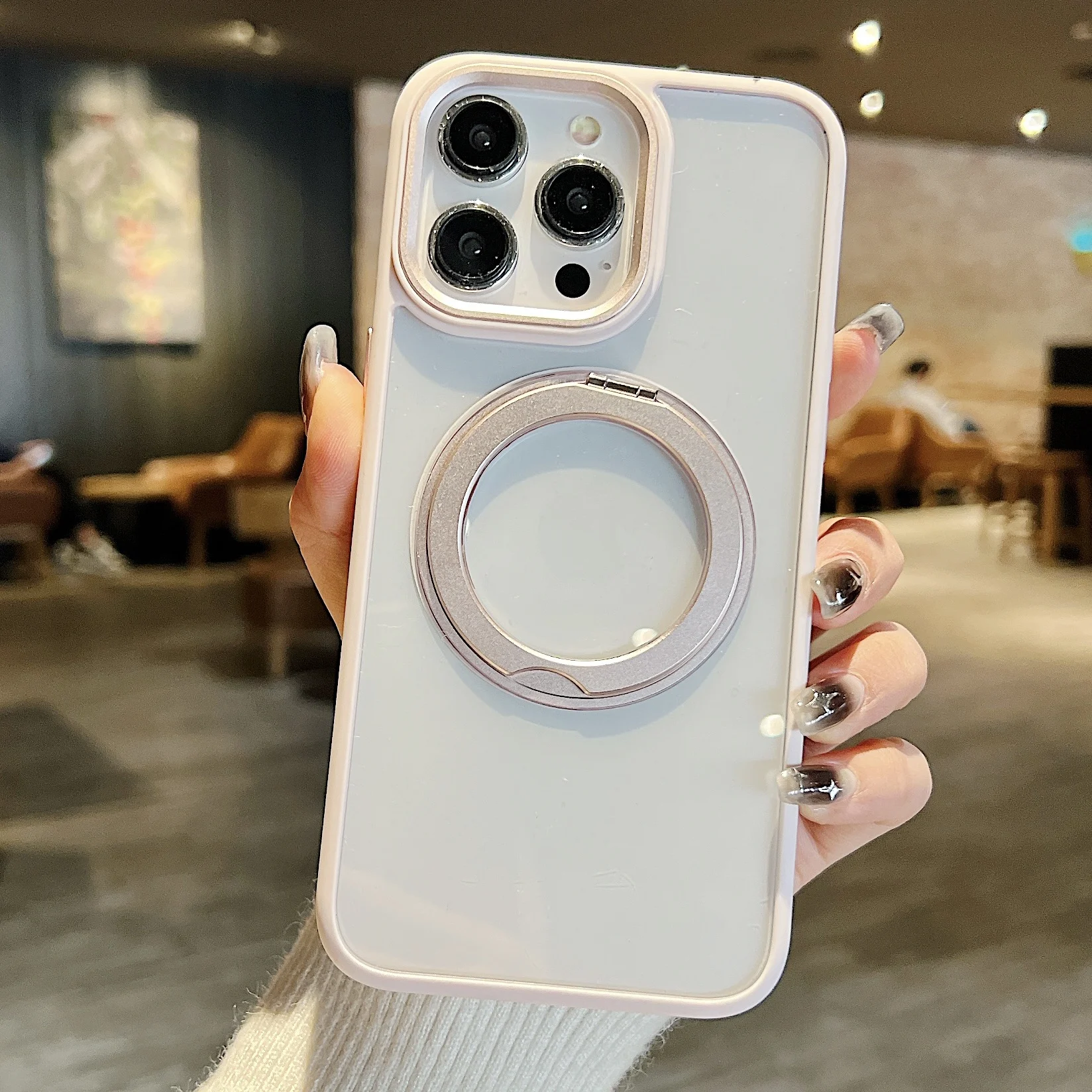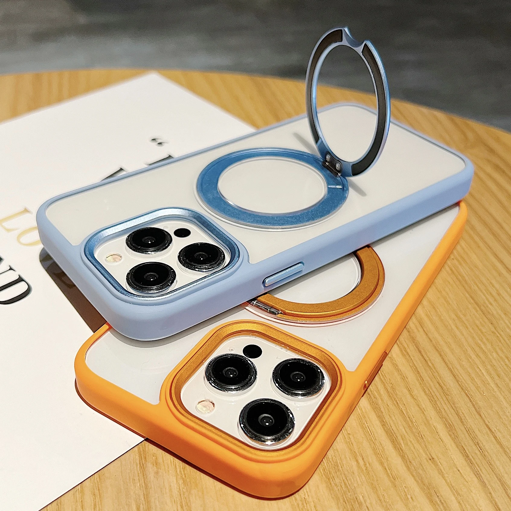 360°Rotating Magnetic Stand Phone Case For iPhone 13 14 15Pro Max Magsafe Wireless Charging Bracket Transparent Shockproof Cover