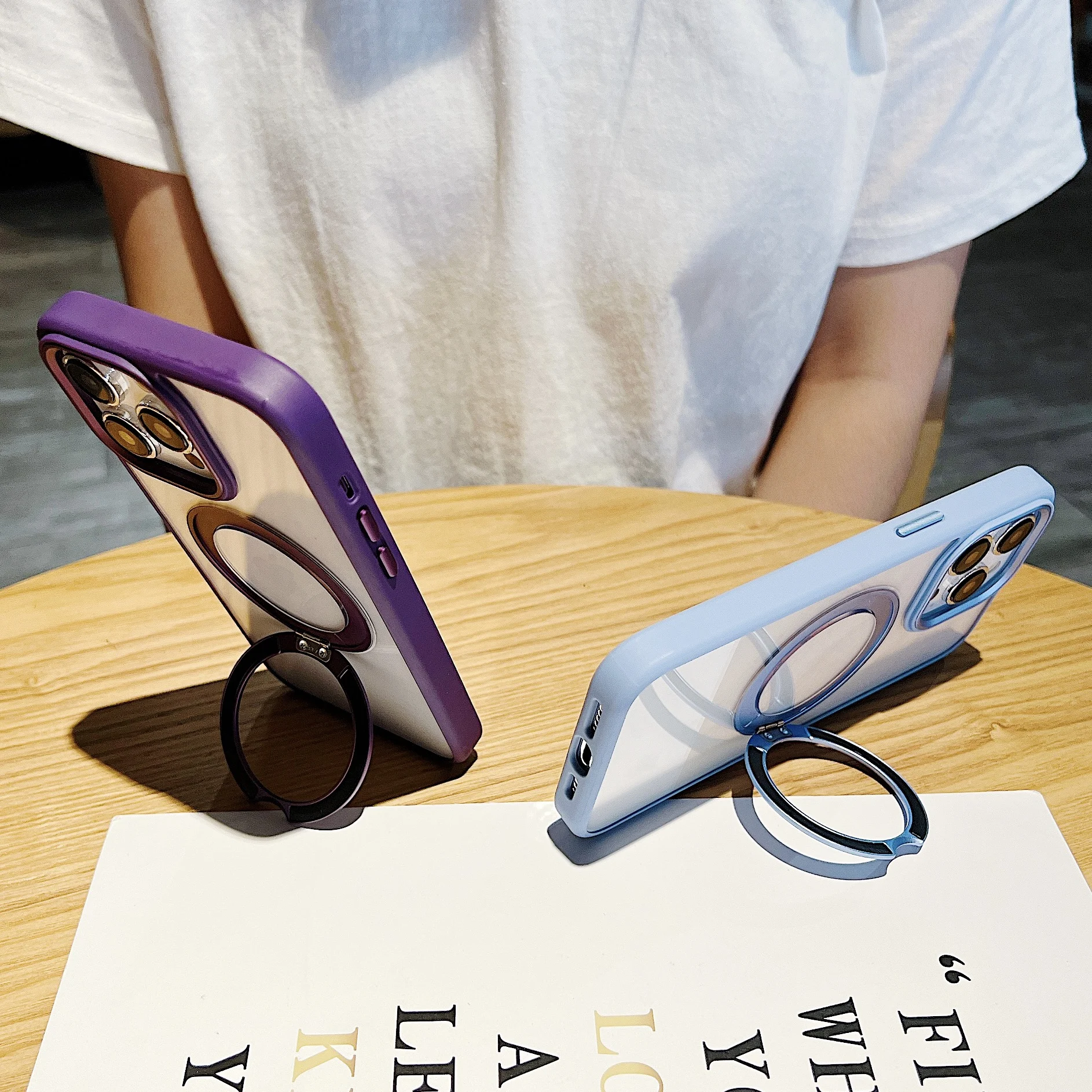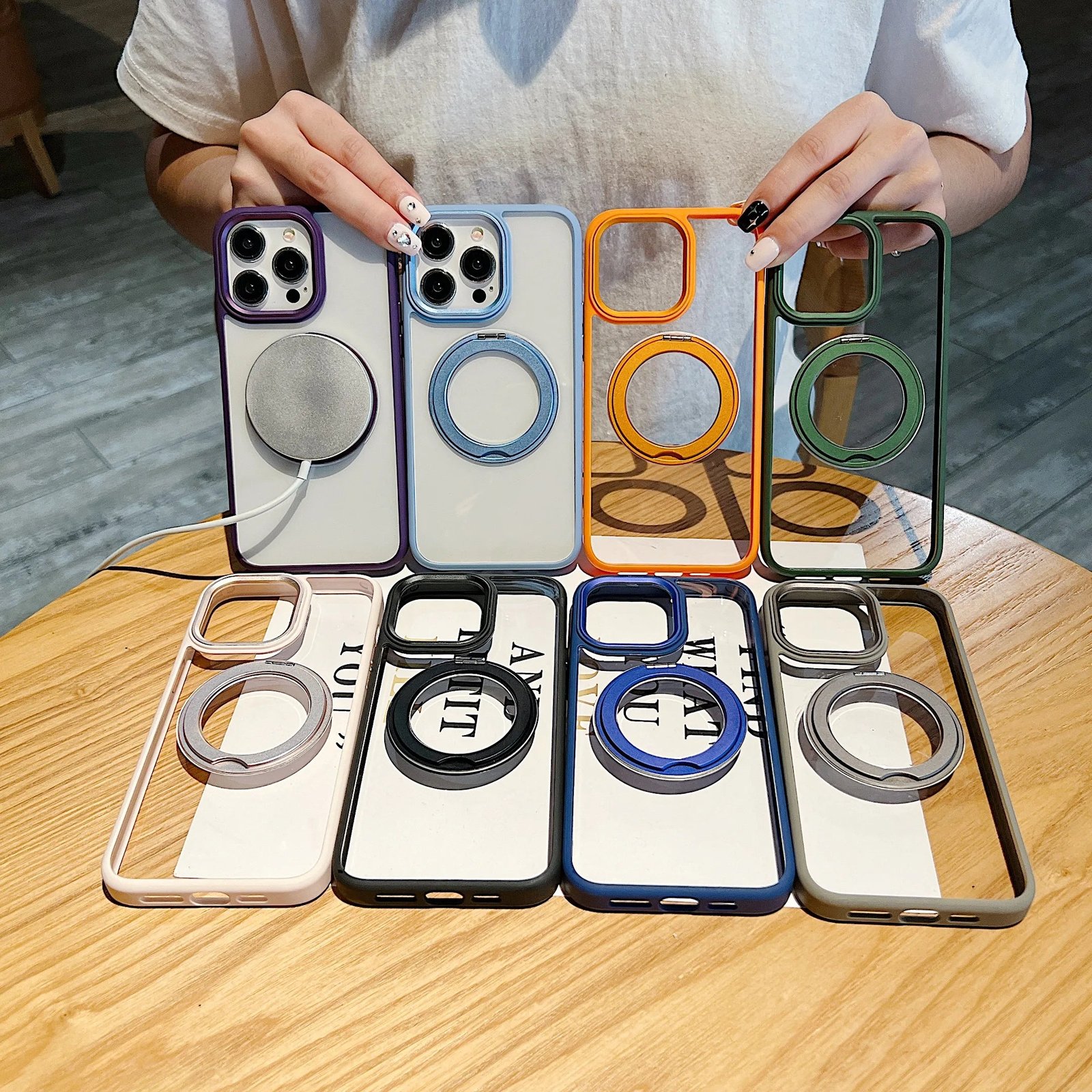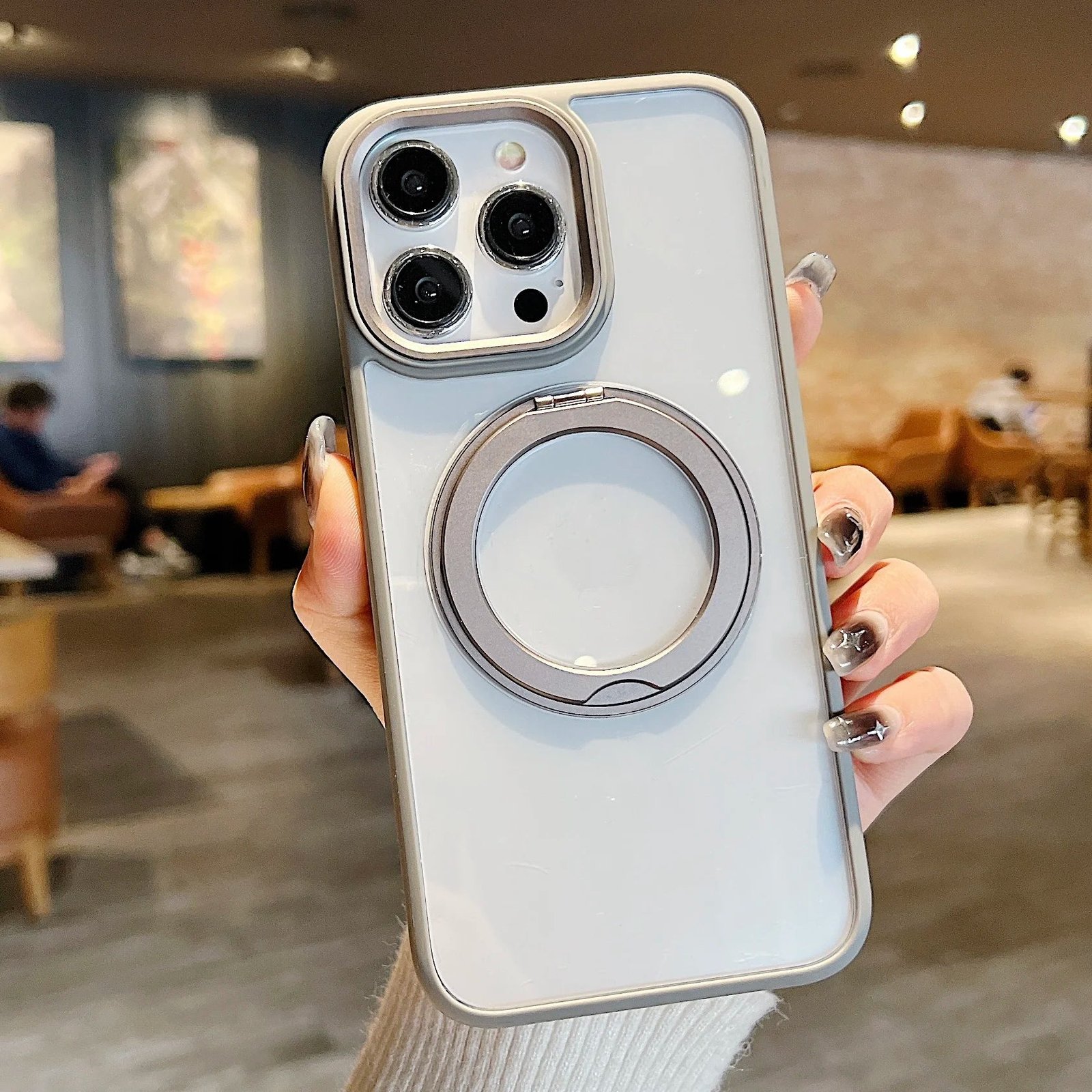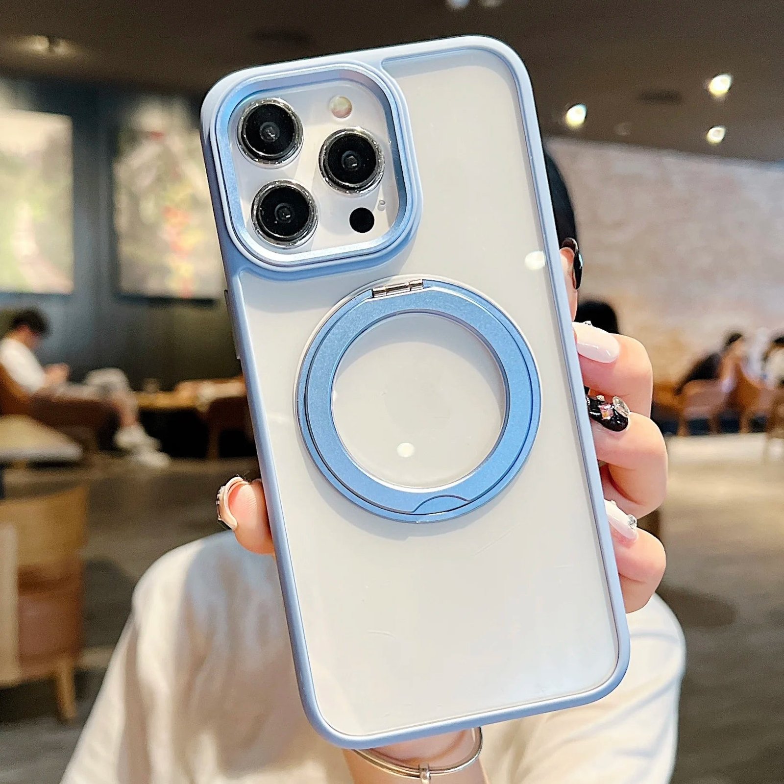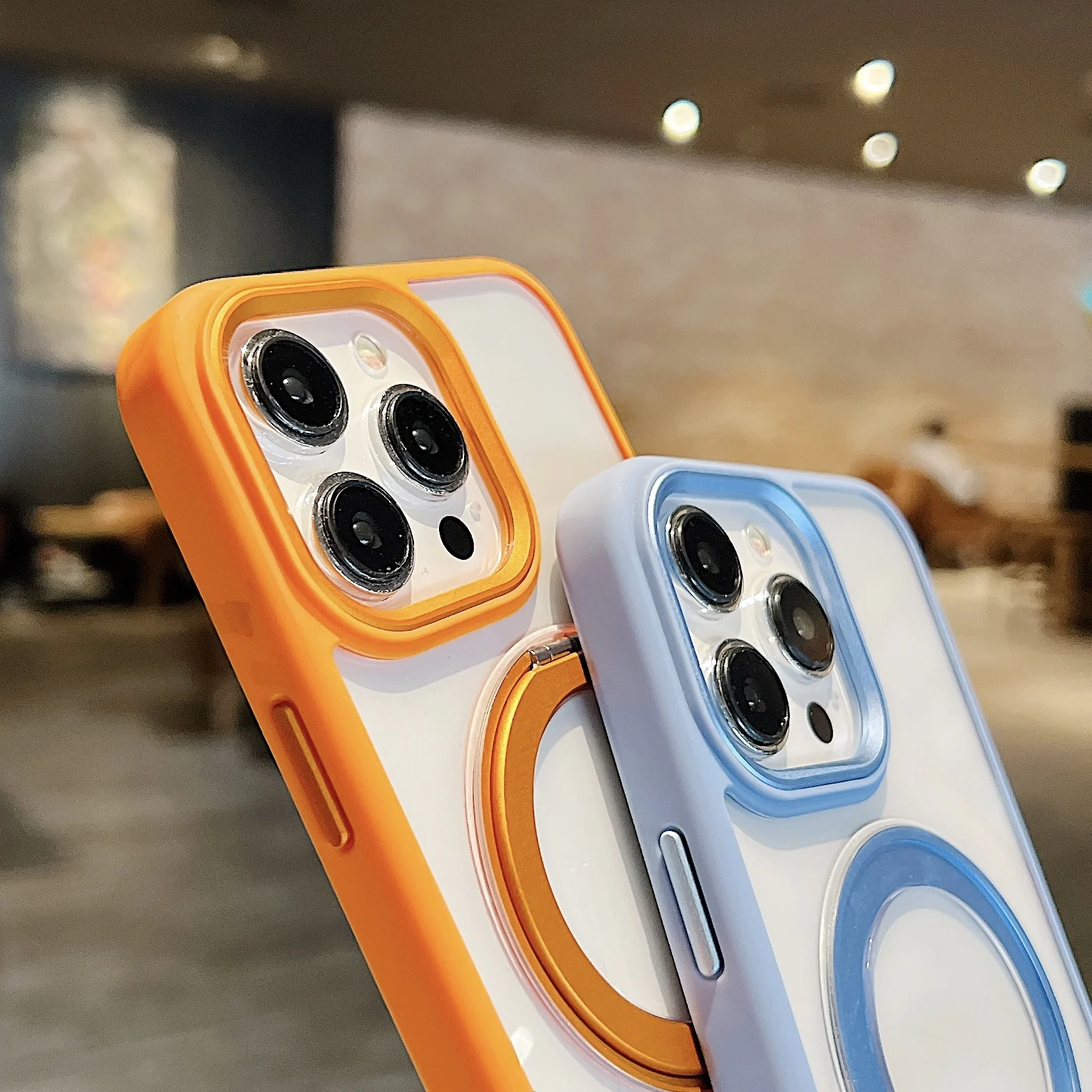 360°Rotating Magnetic Stand Phone Case For iPhone 13 14 15Pro Max Magsafe Wireless Charging Bracket Transparent Shockproof Cover
