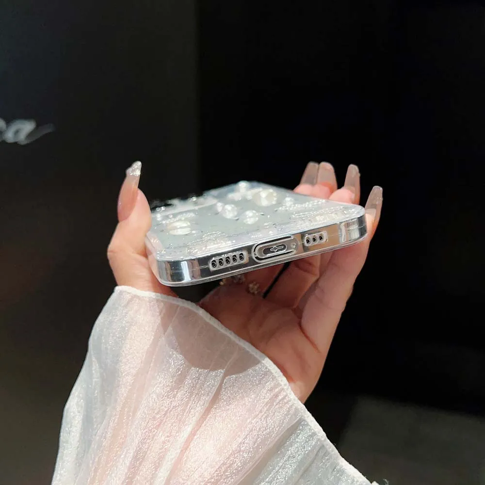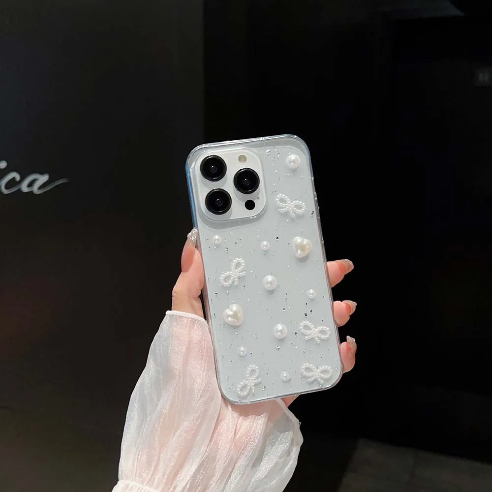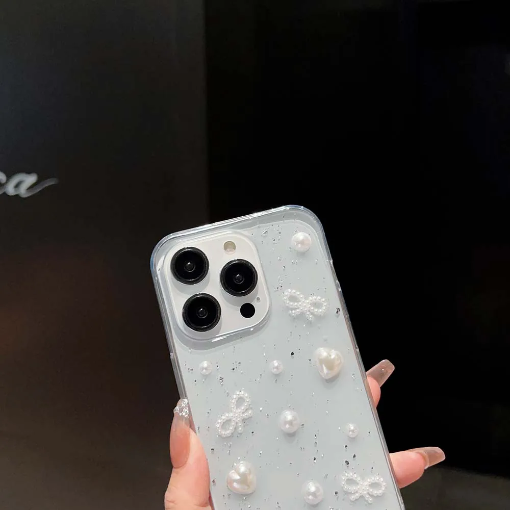 3D Epoxy Bead Butterfly Knot Case For iPhone 15 14 13 12 11 Pro Max XS XR 7 8 Plus Mini SE Clear Soft TPU Cover Skin