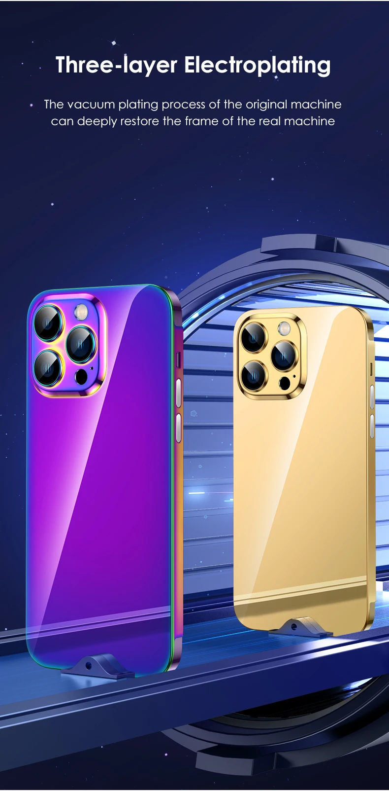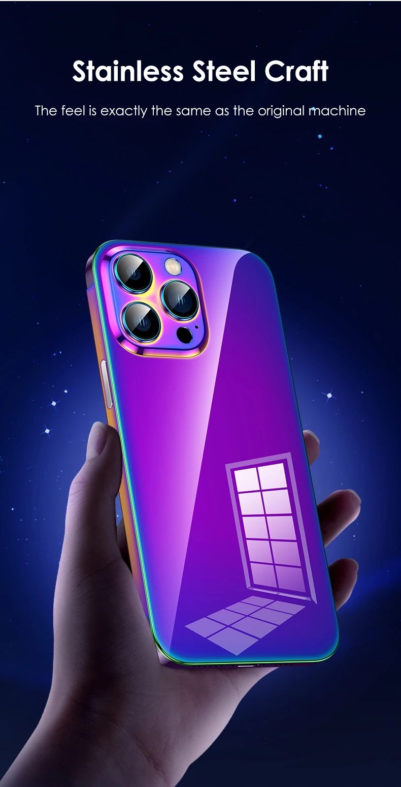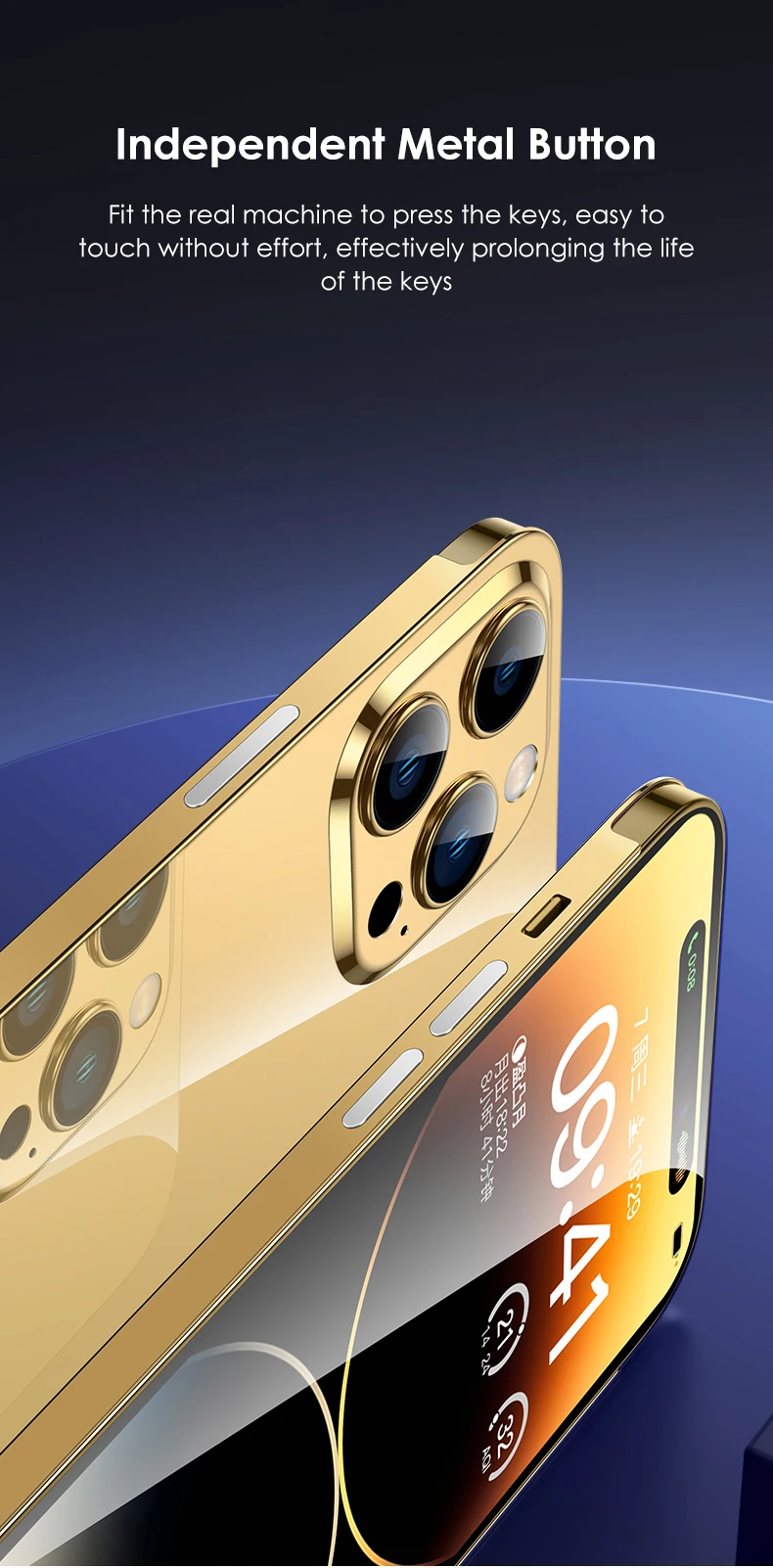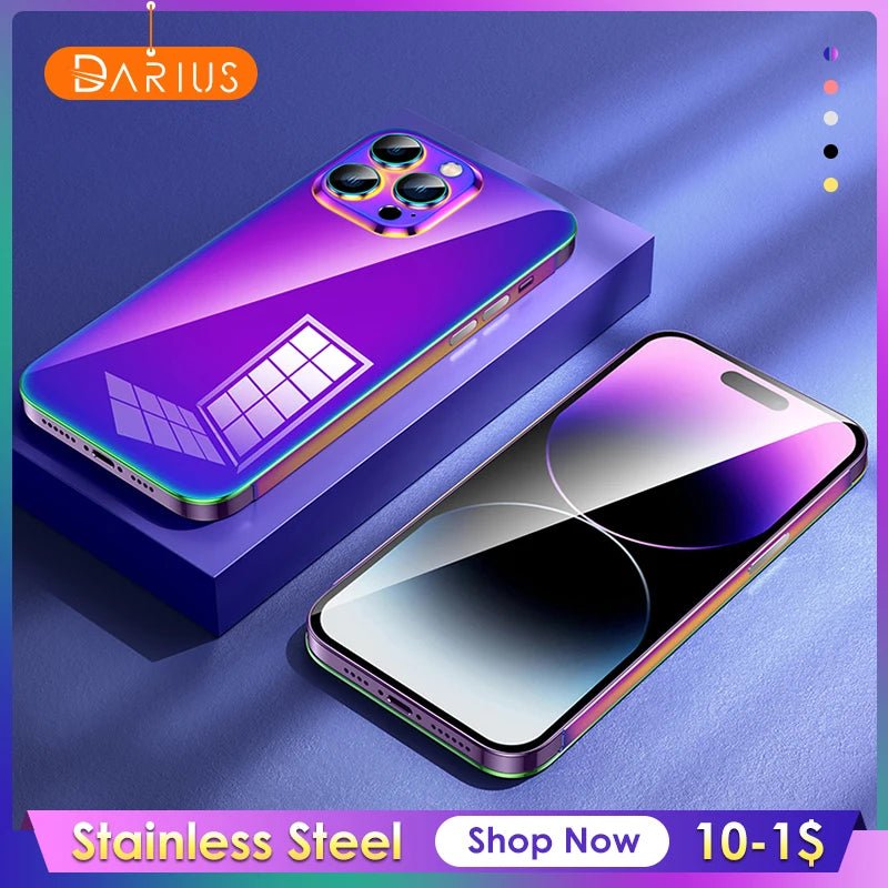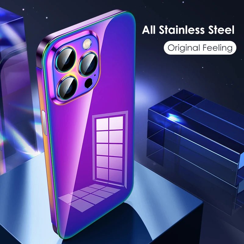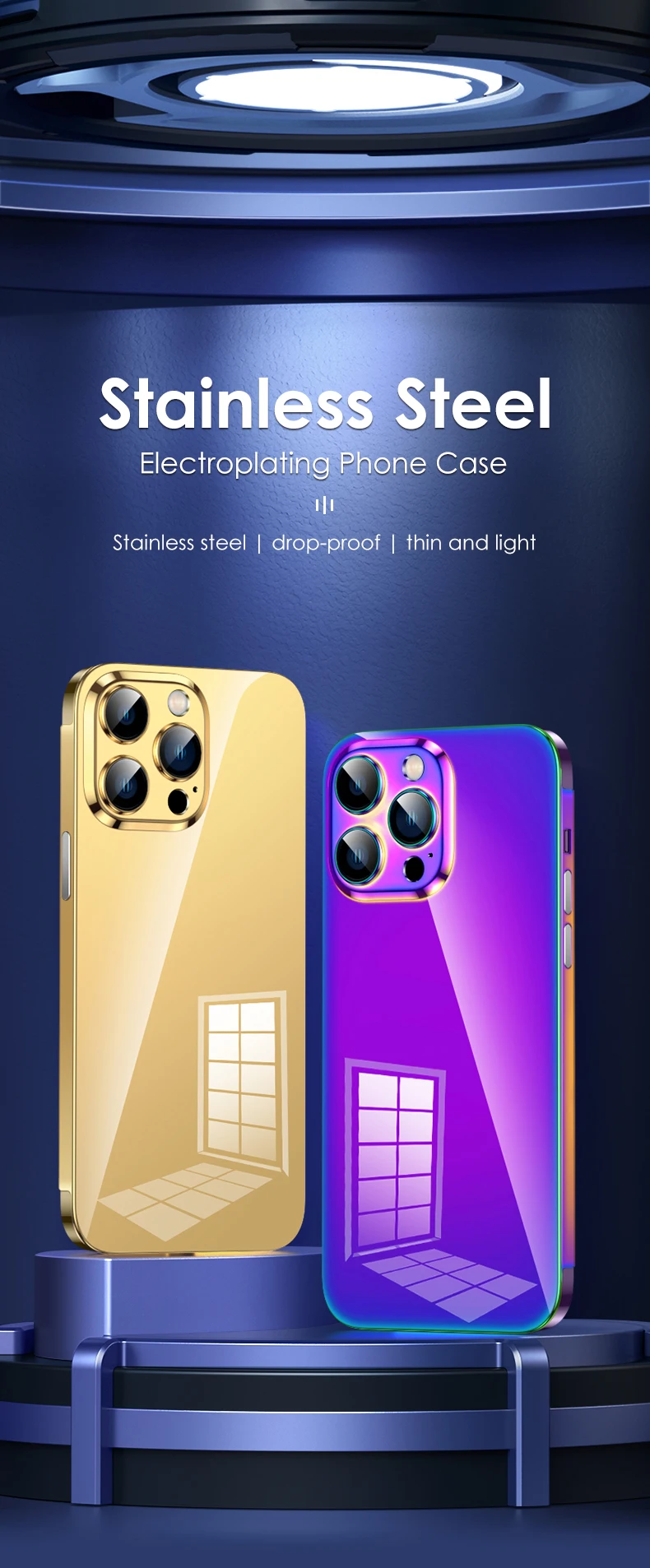 Case For iPhone 14 Pro Max 13 Pro Metal Stainless Steel Shell Electroplated Shockproof Protective Phone Cover For IPHON 14Plus