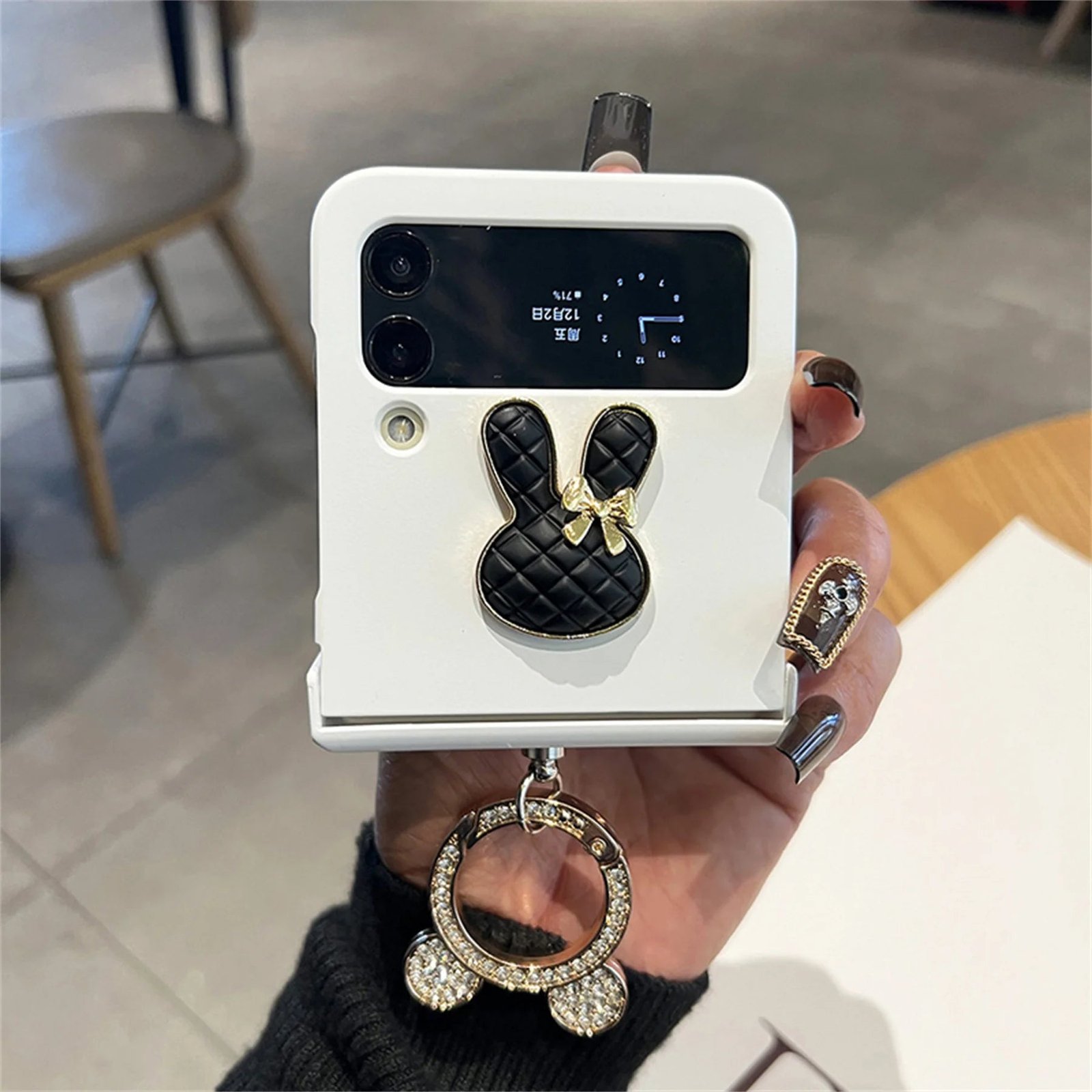 Cute Korean 3D Bunny Rabbit Glitter Bear Ring Solid White Case for Samsung Galaxy Z Flip 3 4 5G Z Flip5 Flip4 Zflip5 Back Cover