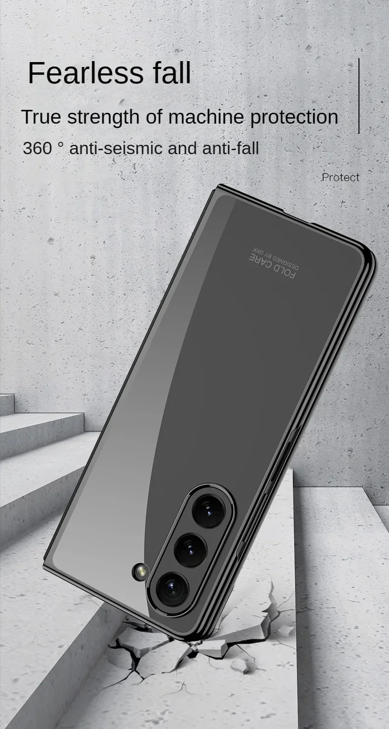 Electroplating Transparent Colorful Folding For Samsung Galaxy Z Fold 5 Case Shockproof Protection Hard Back Cover Accessories