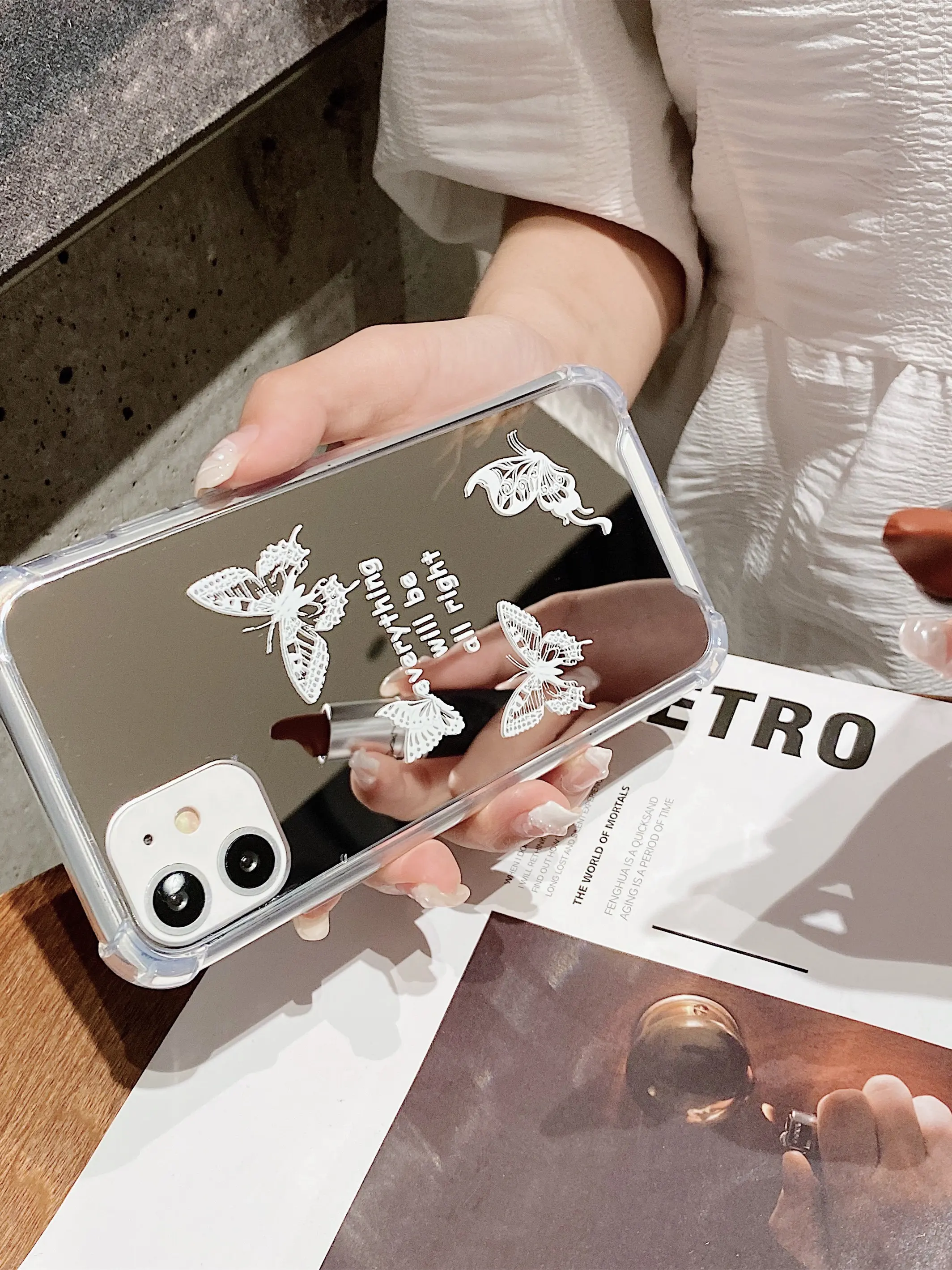 Elegant Butterfly Phone Case For iPhone 15 14 13 12 11 Pro Max Mirror Phone Cases For iPhone 11 Xr 7 8 Plus