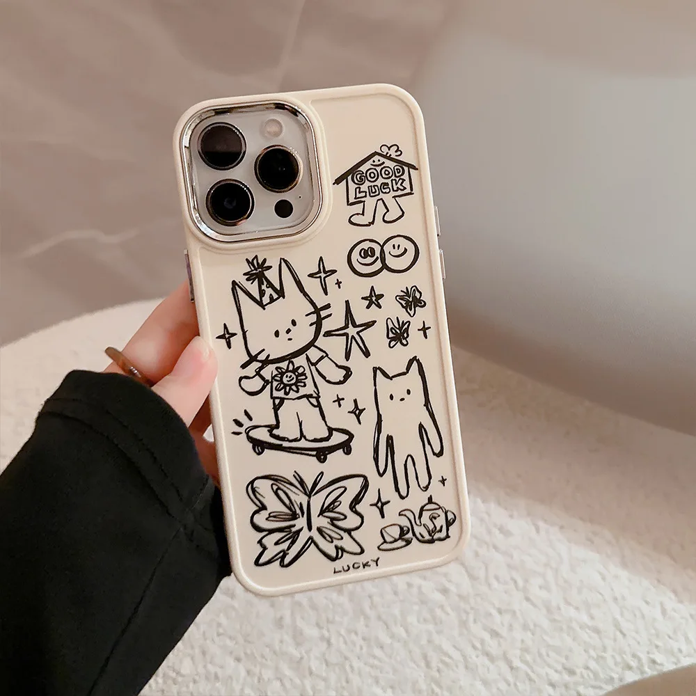 Funny Cute Cartoon Sketch Cat Soft Phone Cover Case For iPhone 15 14 13 12 11 Pro Max Plus X XS XR