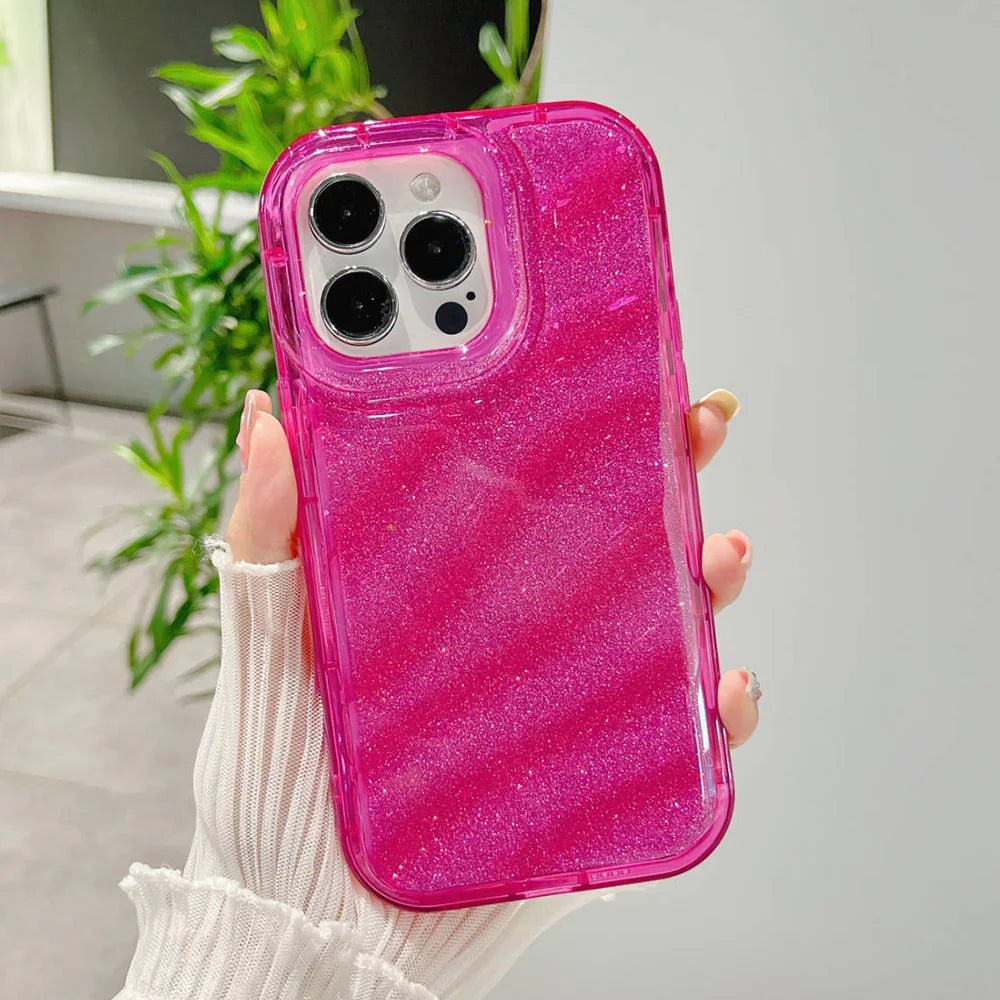 Glitter 3D Wave Case For IPhone 11 14 13 12 Pro Max XR XS Max X 7 8 Plus 6 6S SE 2020 2022 Shockproof Protection Back Funda Case