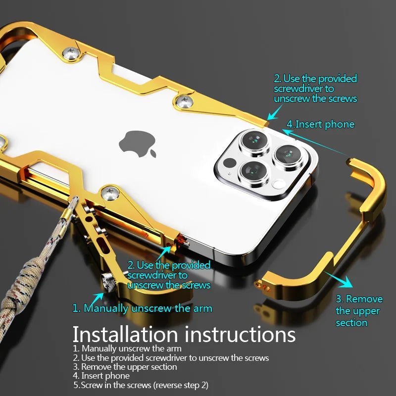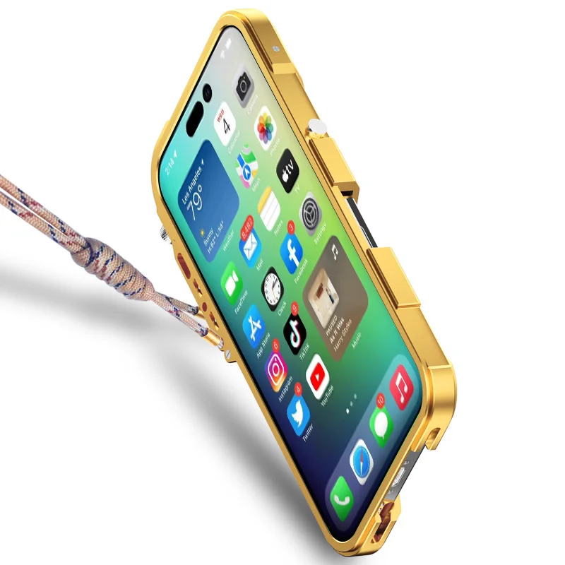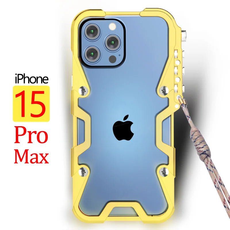 Luxury Aluminum Shockproof Bumper Phone Case For iPhone 14 12 13 15 Pro Max Plus Metal Frame Removable Shell With Lanyard Cover