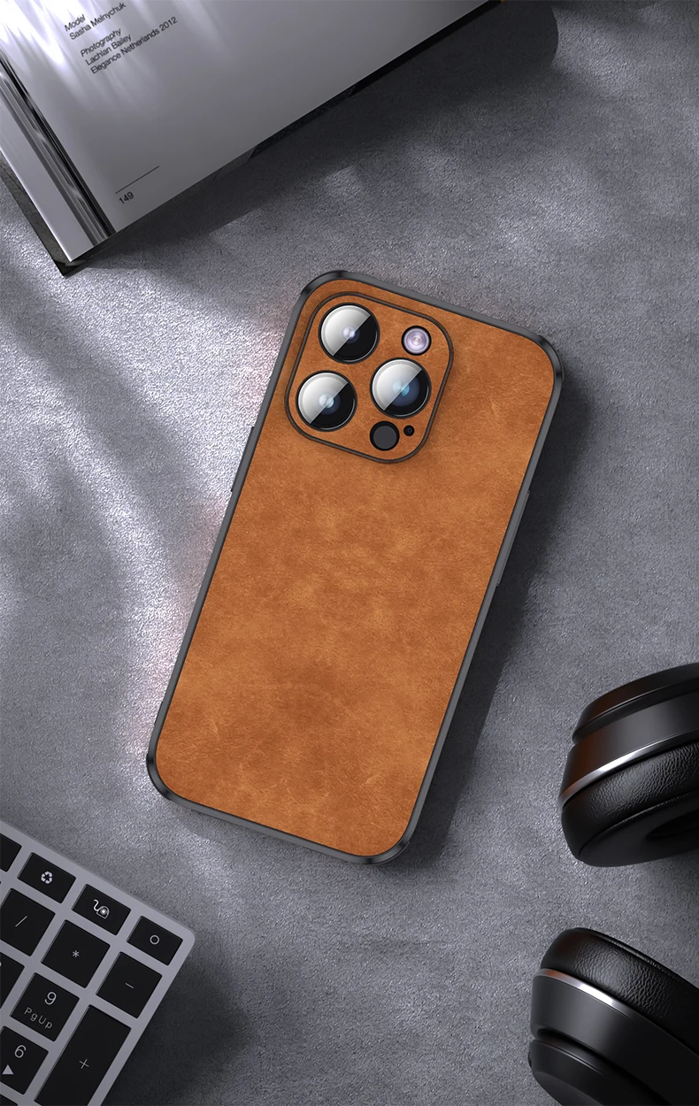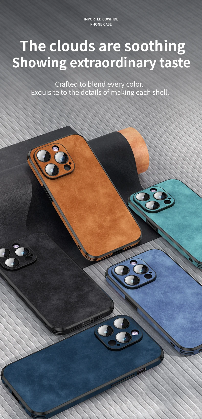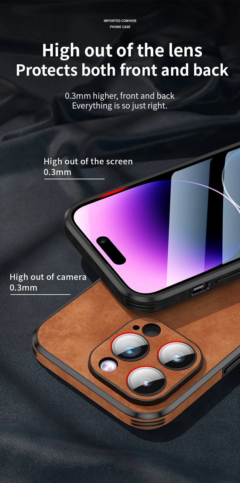 Luxury Business Leather Phone Case For iPhone 14 13 12 Pro Max 14Plus Silicone Bumper Lens Film Protect Shockproof Cover Funda