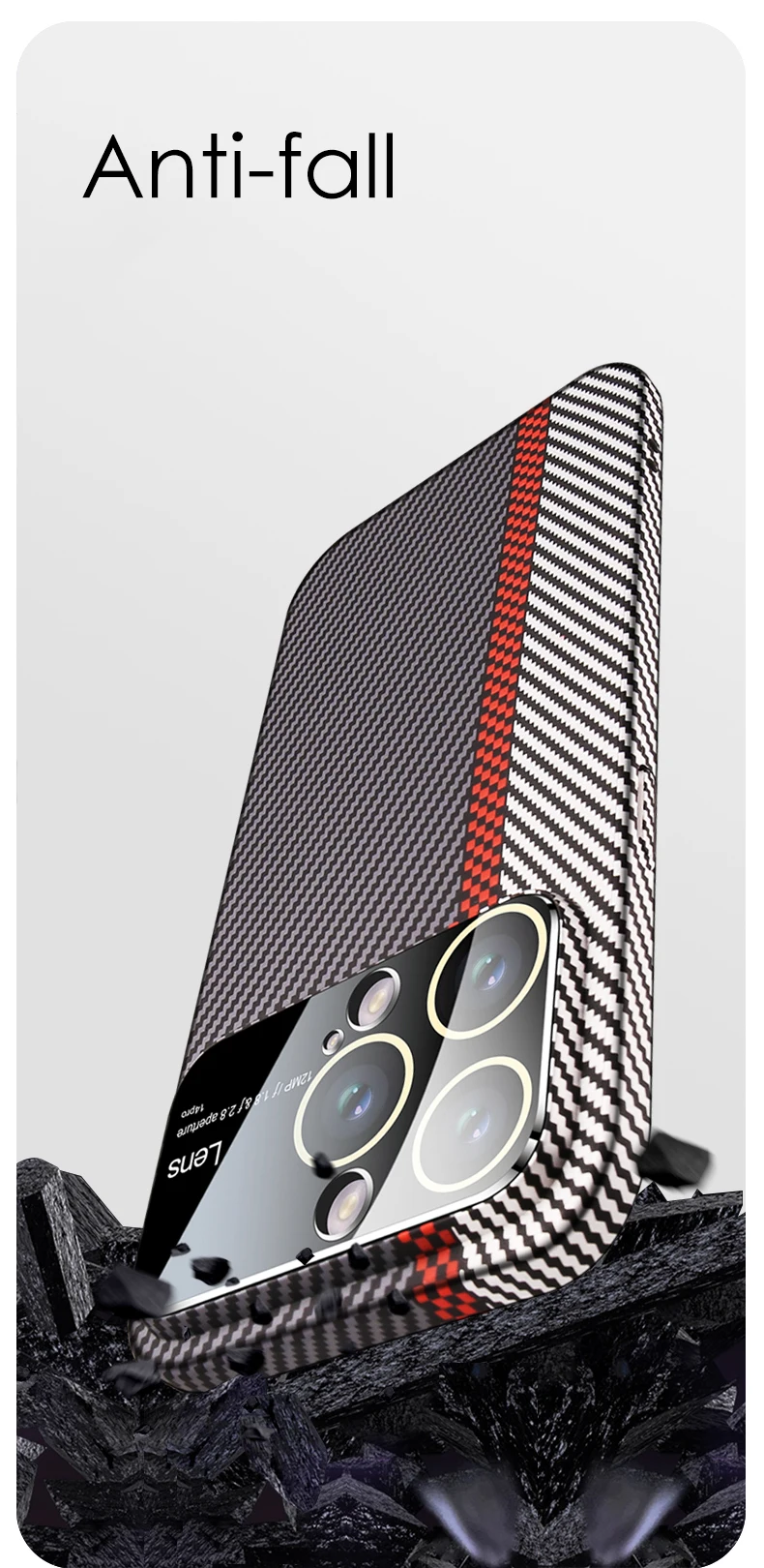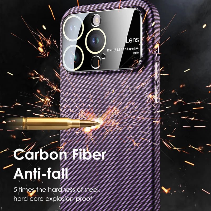 Luxury Carbon Fiber Texture Lens Film Protection Phone Case For iPhone 11 12 13 14 Pro Max 14Plus Carbon Fiber Shockproof Cover