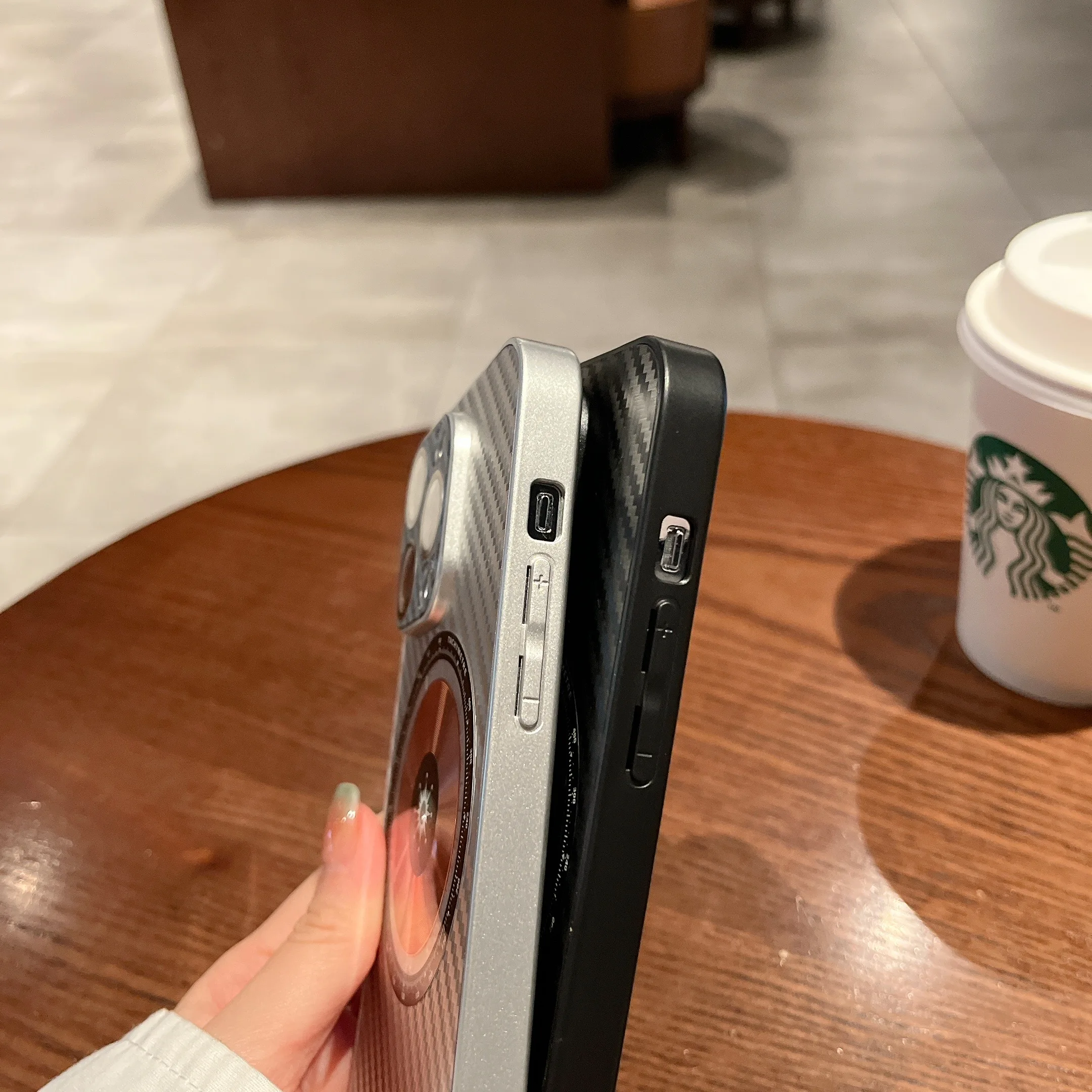 Luxury Carbon Fiber Texture Magnetic Phone Case For iPhone 14 13 12 11 Pro Max 14Plus 13Pro For Magsafe Wireless Charging Cover