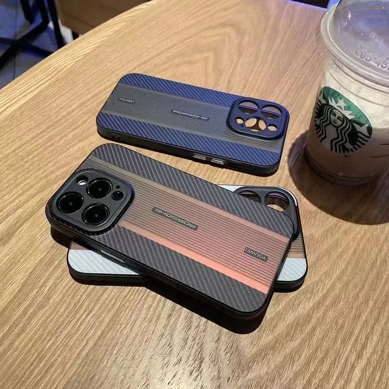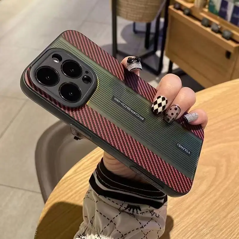 Luxury Carbon Fiber Texture Phone Cases For Iphone 14 13 12 Pro Max 14 Plus Supercar Style Gradient Color Shockproof TPU Cover