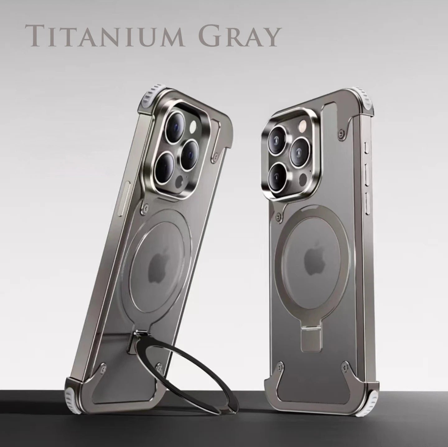 Luxury Magnetic Magsafe Rimless Frosted Metal Phone Case For iPhone 14 13 15 Pro Max Plus Aluminum Stand Shell Matte Back Cover