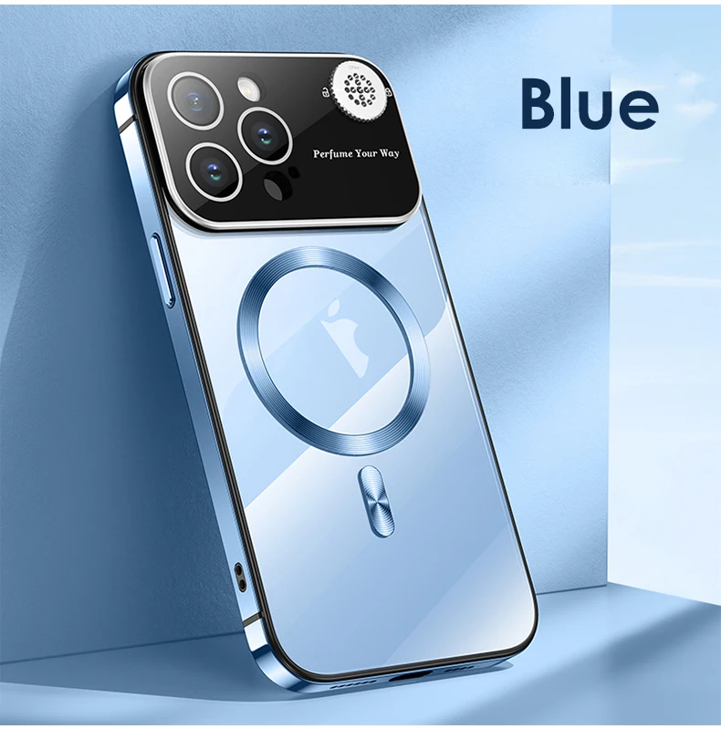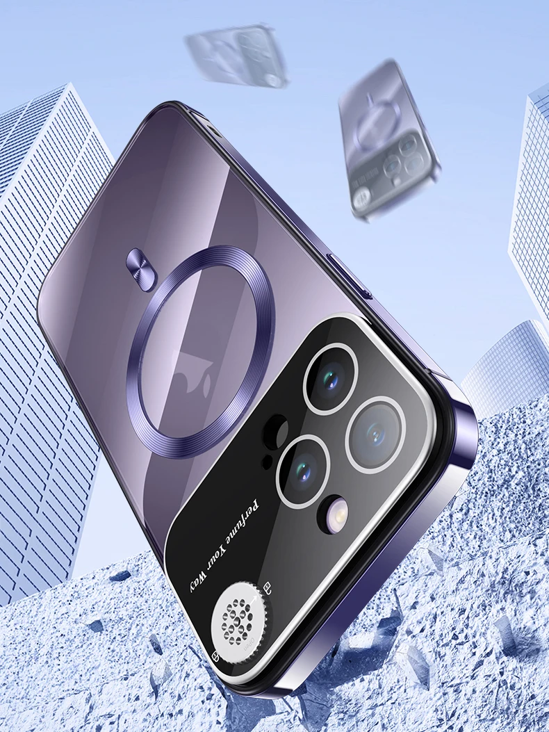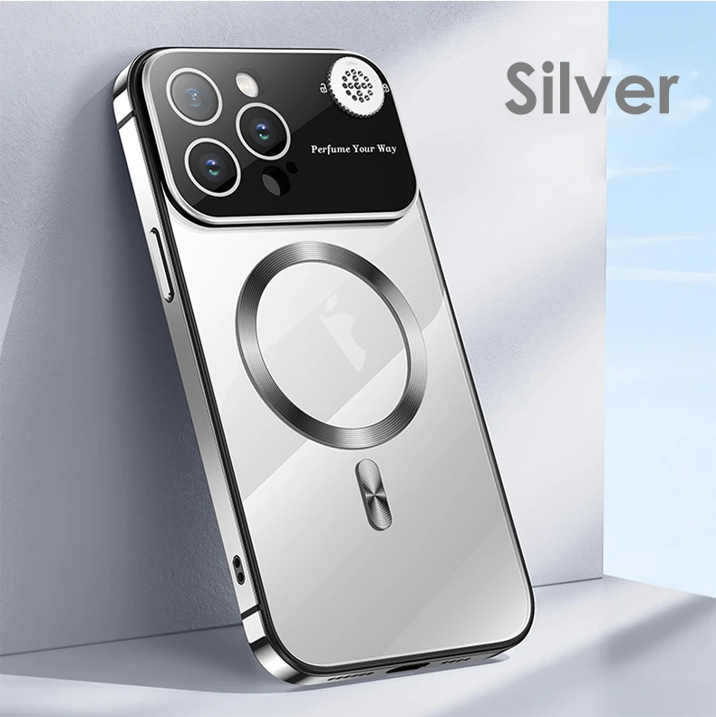 Luxury Magsafe Magnetic Metal Frame Phone Case For iPhone 13 14 15 Pro Max Full Lens Protection Shell Aromatherapy Transparent Cover