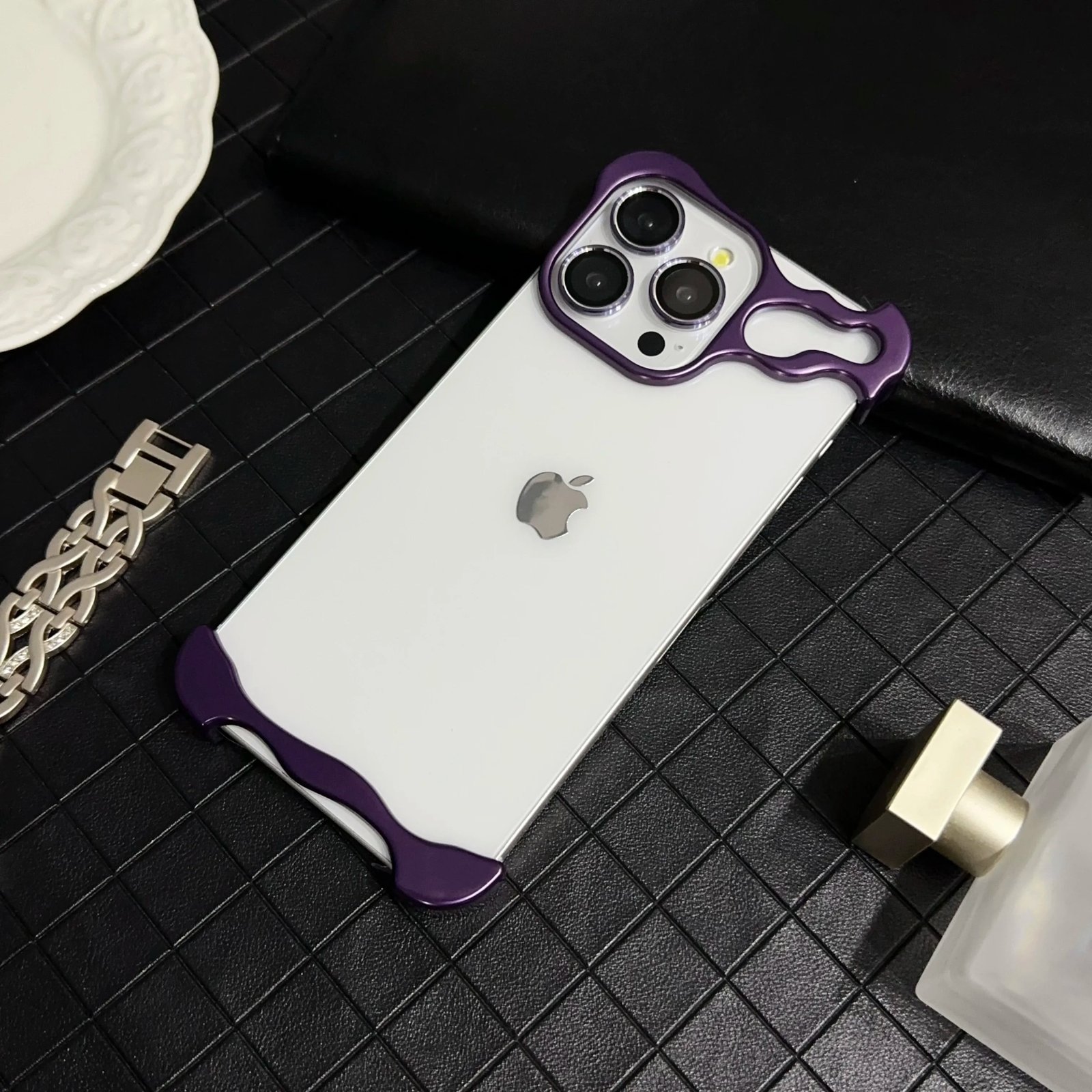 Luxury Metal Titanium Alloy Irregular Phone Case For iPhone 13 14 15 Pro Max 14 15Plus Alien Aluminum Lens Ring Protection Cover