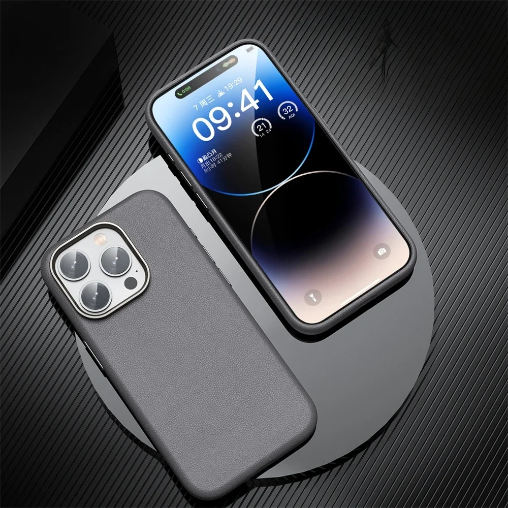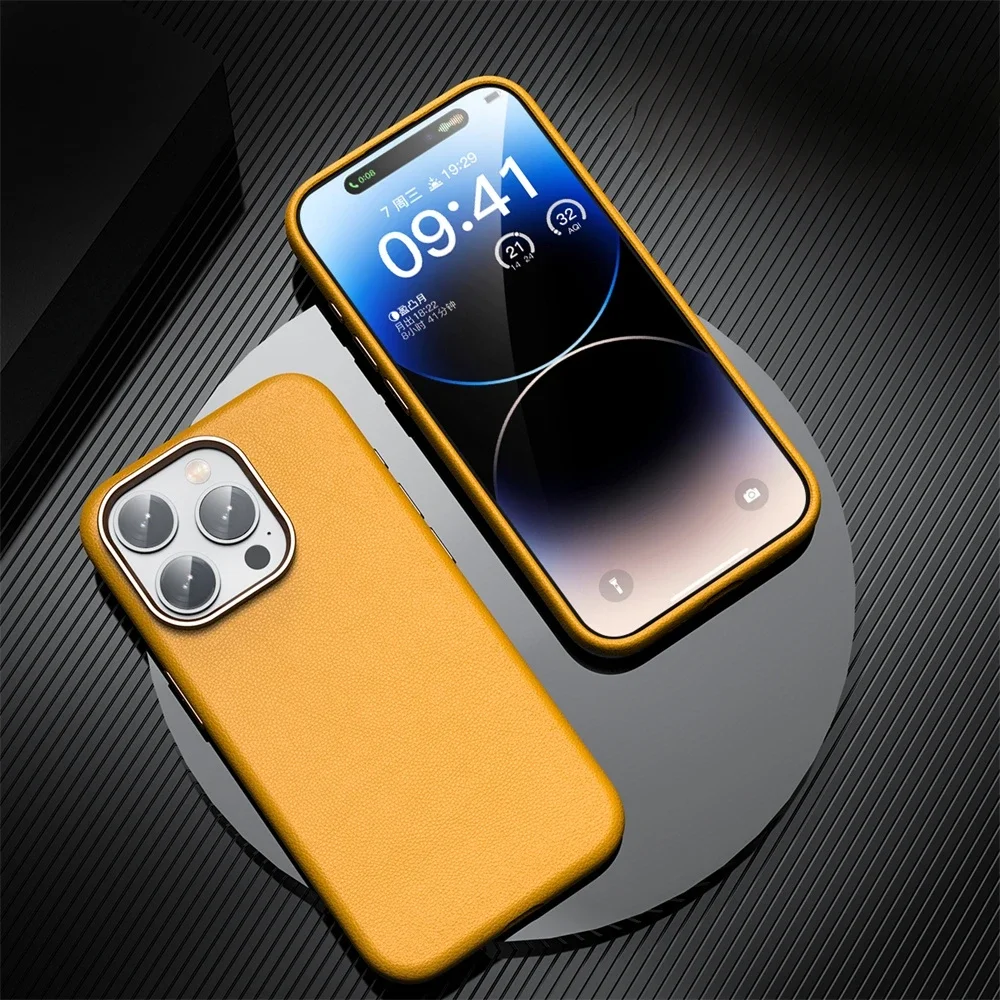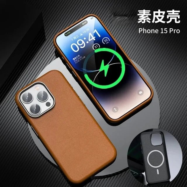 Luxury Original Leather Magsafe Magnetic Phone Case For iPhone 14 15 Pro Max Camera Protection Slim Matte Soft Shockproof Cover
