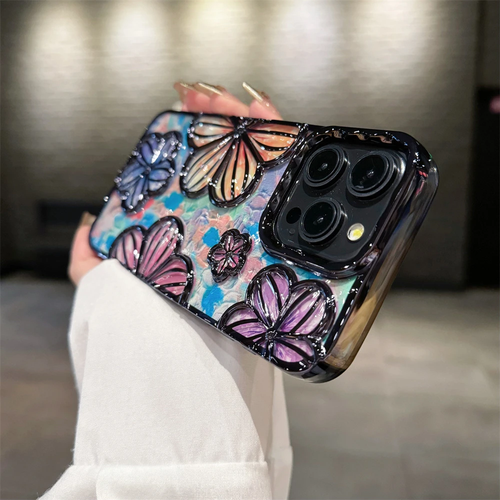 Luxury Plating Colour Fashion Flowers Phone Case For iPhone 11 12 13 14 15 Pro Max Soft Bumper Protector On 14 Pro Cover