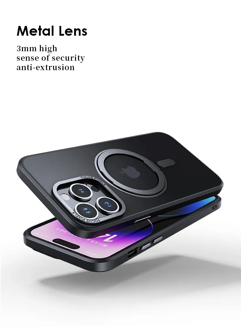 Magnetic 360°Rotation Stand Phone Case For iphone 11 12 13 14 15 Pro Max 15Plus With Ring Holder Frosted Transparent Cover Funda
