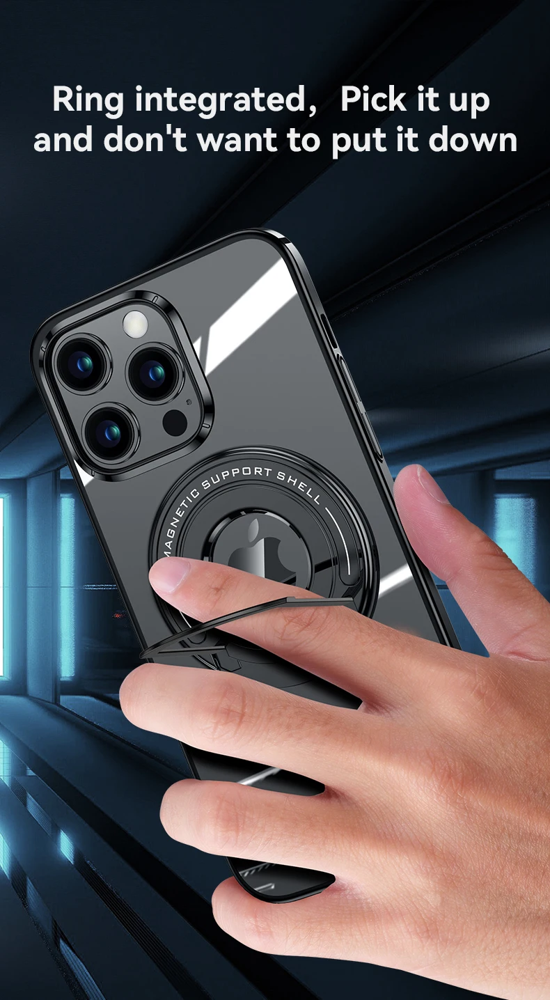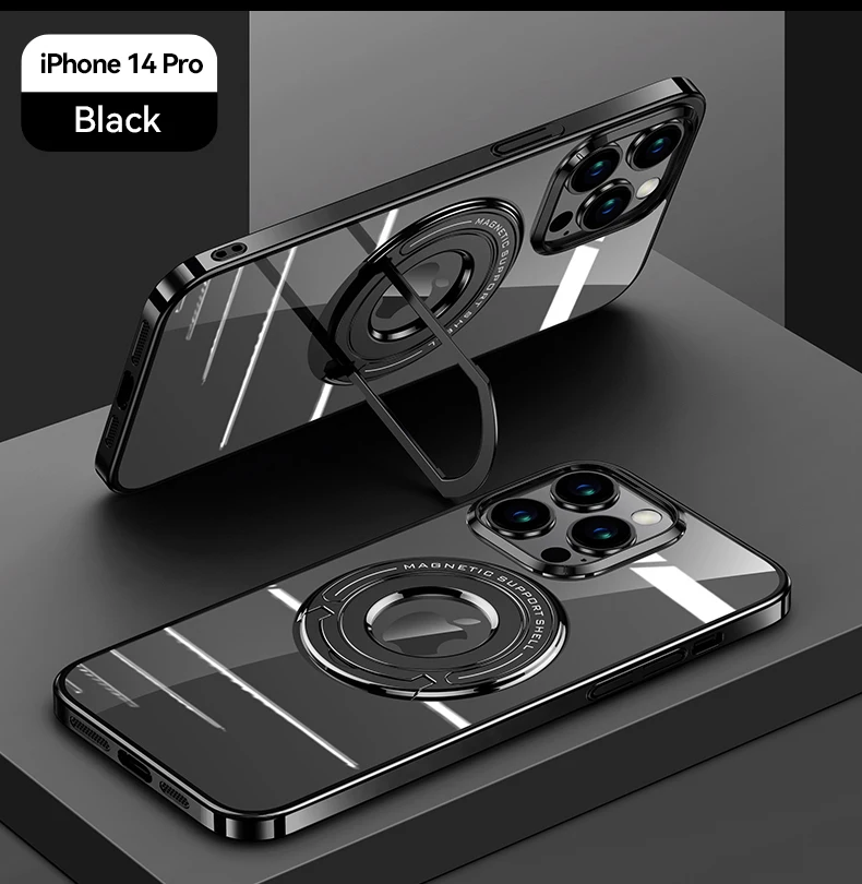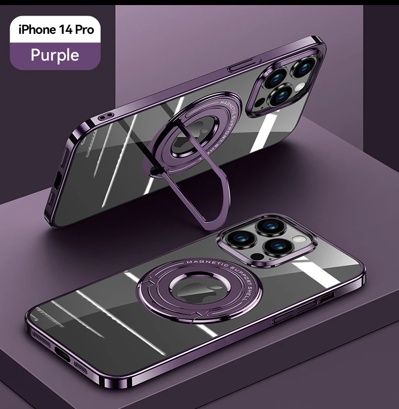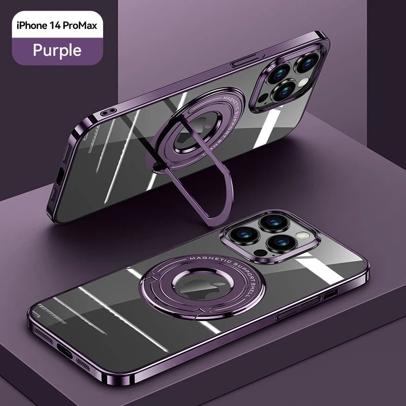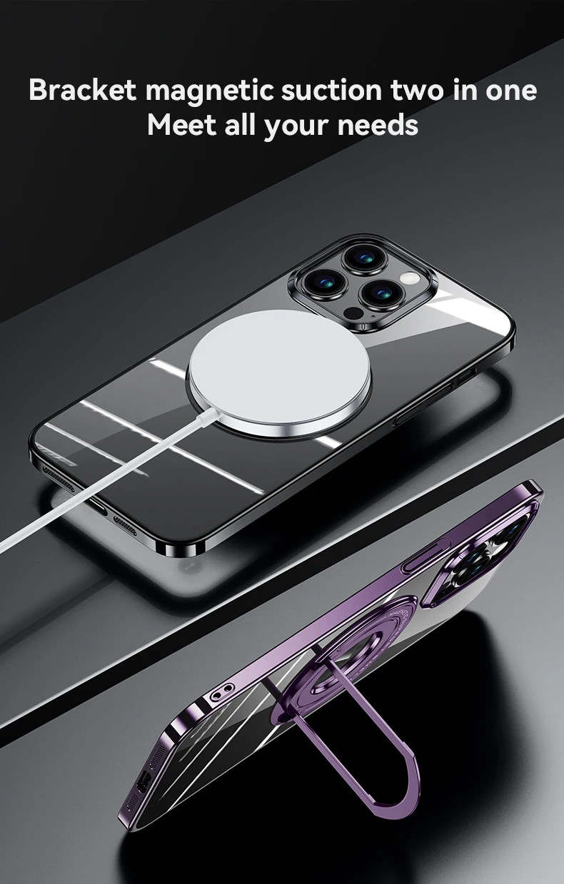 Magnetic Plating Hidden Stand Phone Case For iPhone 14 13 12 Pro Max Samsung S23 Plus Ultra Electroplating HD Transparent Cover