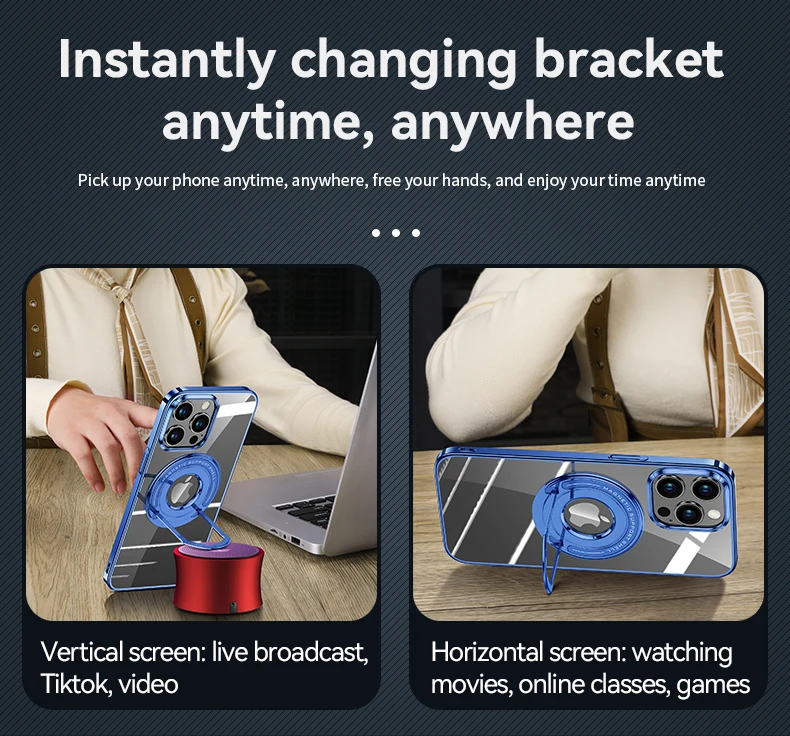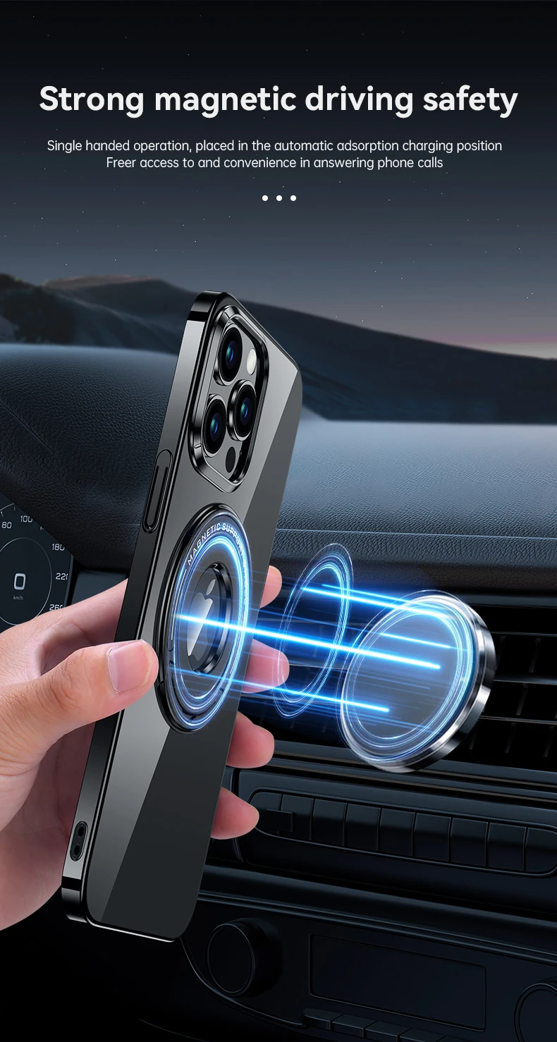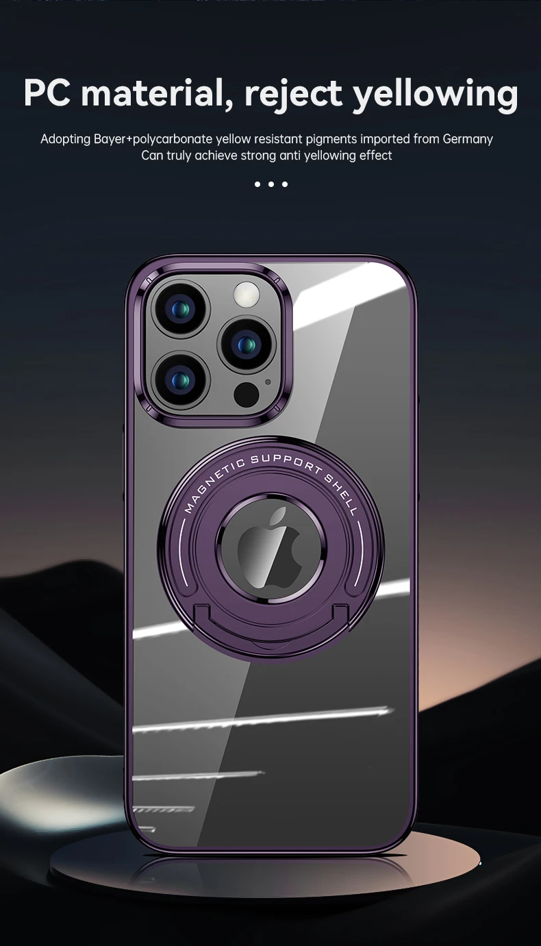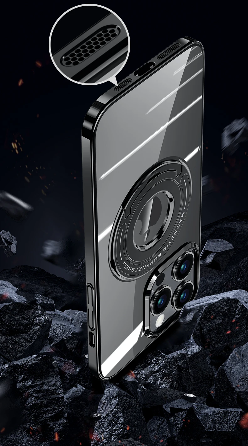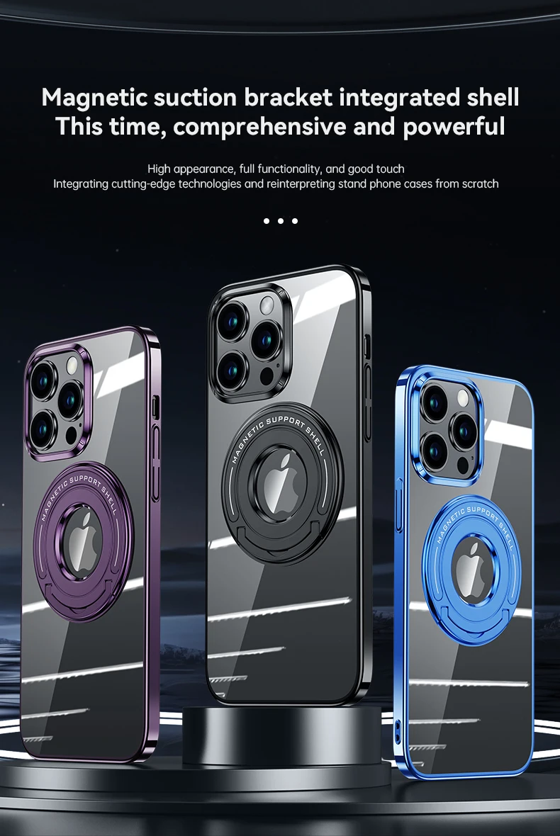 Magnetic Plating Hidden Stand Phone Case For iPhone 14 13 12 Pro Max Samsung S23 Plus Ultra Electroplating HD Transparent Cover