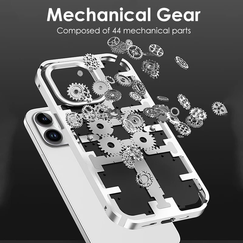 Mechanical Gear Luxury Alloy Metal Frame Case For iphone 12 13 14 Pro Max 14Pro Frosted Shockproof Anti-fingerprint Back Cover