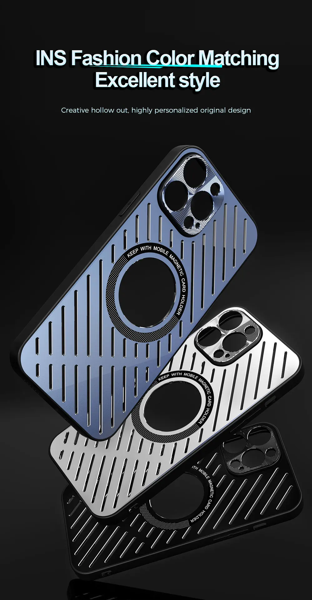 Metal Cooling Phone Case For iPhone 14 13 12 Pro Max 14Plus Lens Protection TPU Frame Hollow for Magsafe Wireless Charging Cover