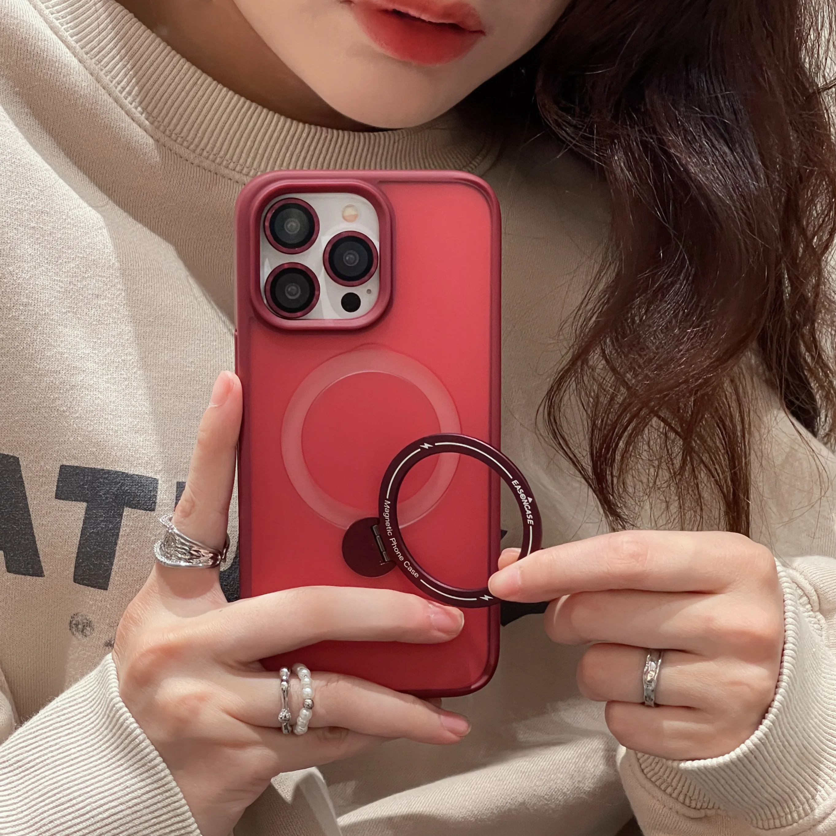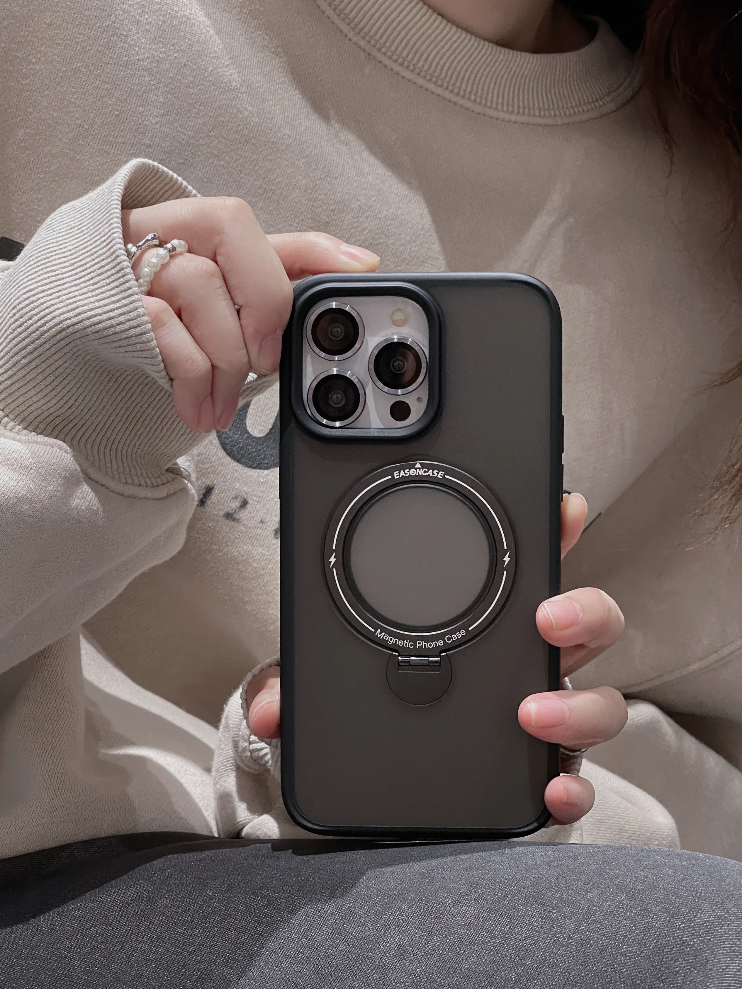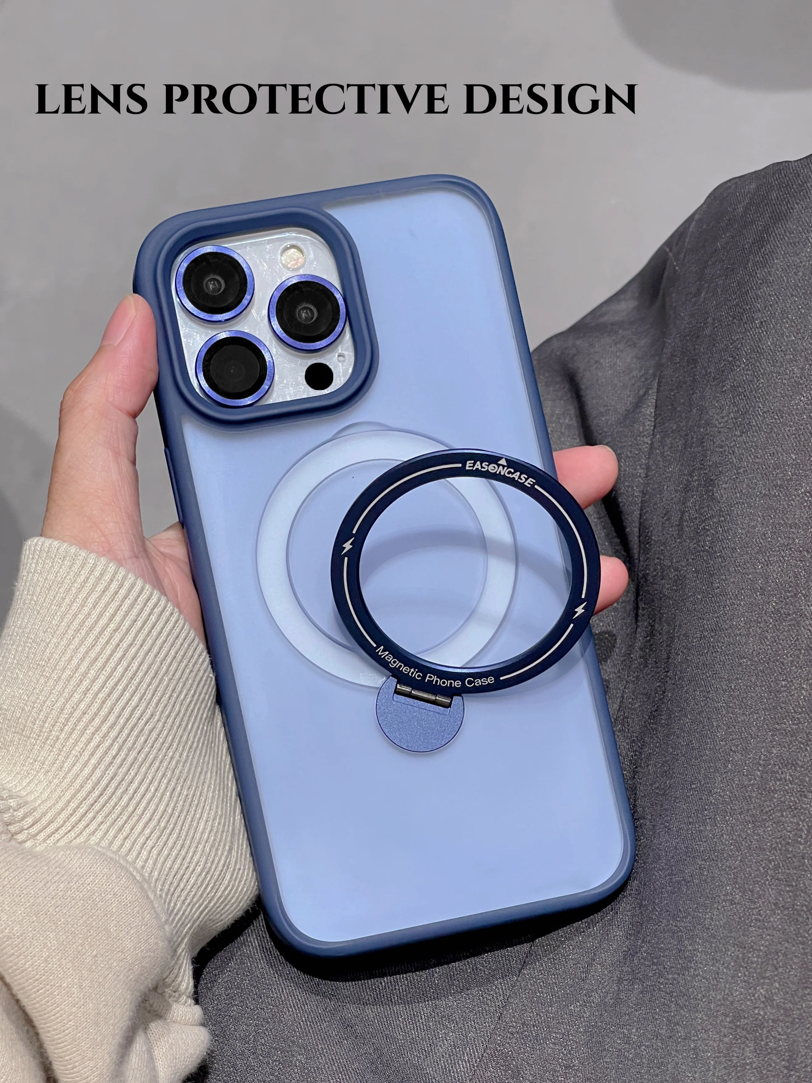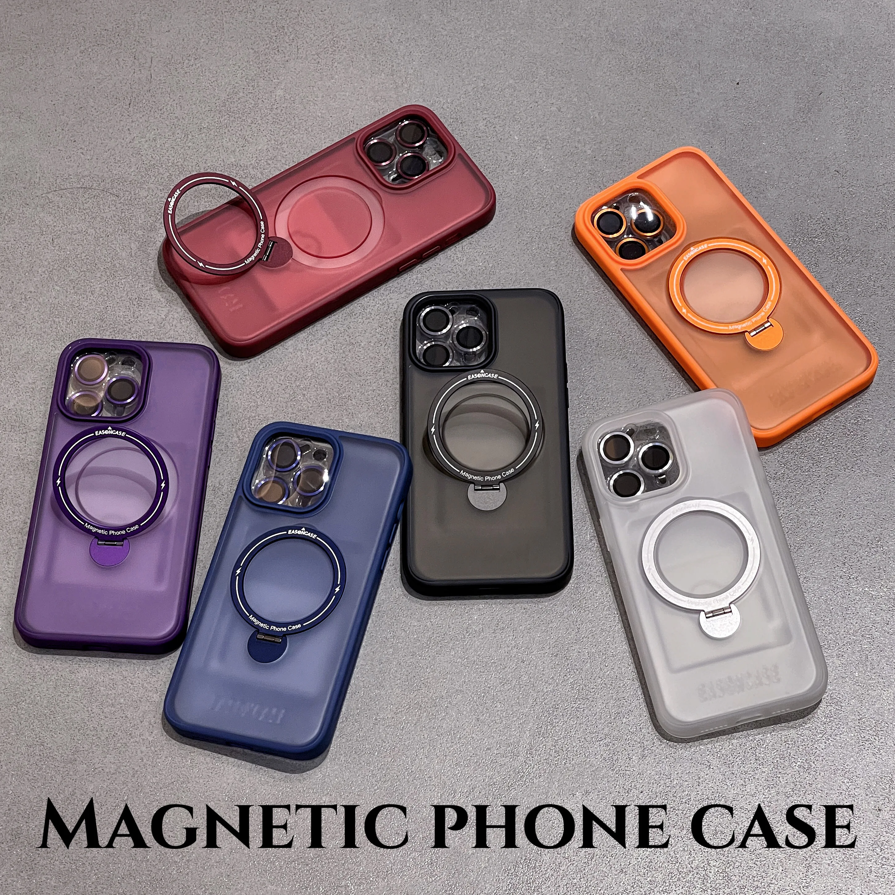 Metal Lens Ring Camera Glass Protection Phone Case For iPhone 15 14 13 11 12 Pro Max Plus Magnetic Magsafe Rotating Stand Cover