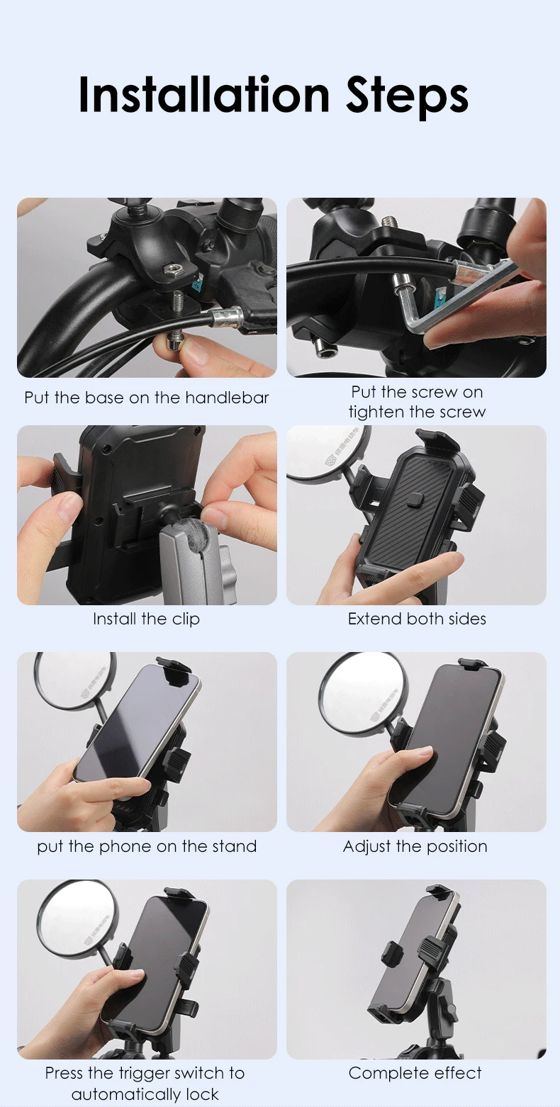 Motorcycle Handlebar Phone Holder For Bicycle 360° Rotation Adjustable Mobile Phone Bracket Smartphone Stand Navigation Mount