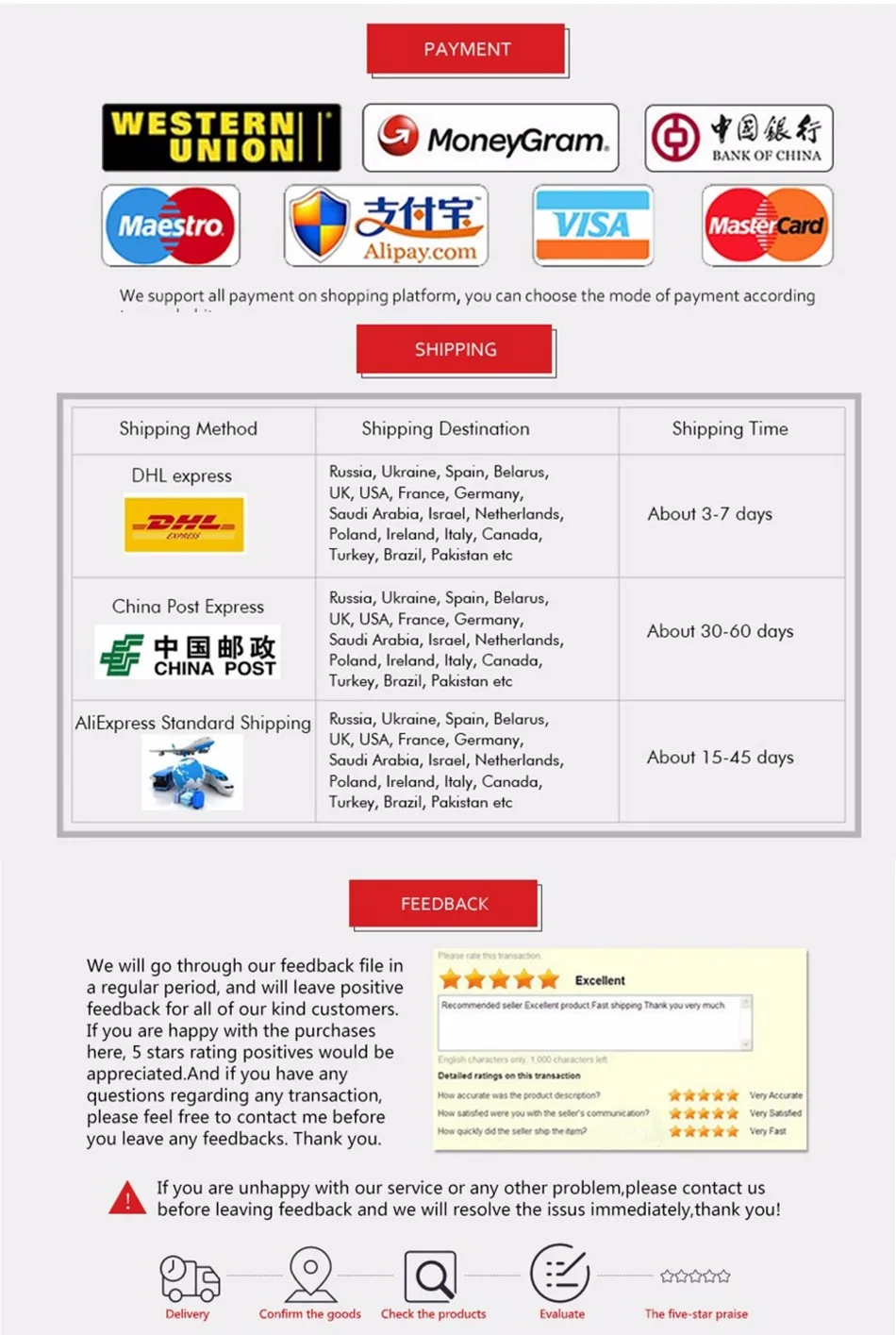 – We are not responsible for nondelivery caused by that client don’t provide enough information when making order.