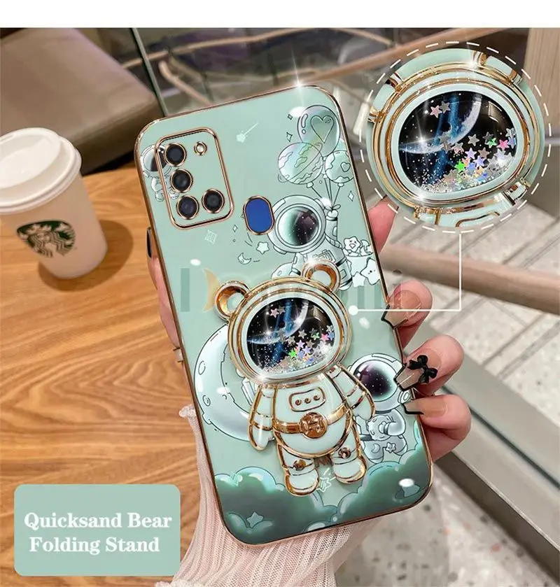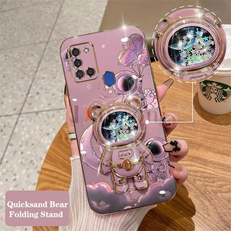 Quicksand Bear Astronaut Phone Holder Case For Samsung Galaxy A21S Shatterproof Camera Protection Galaxy A21S Soft Back Cover