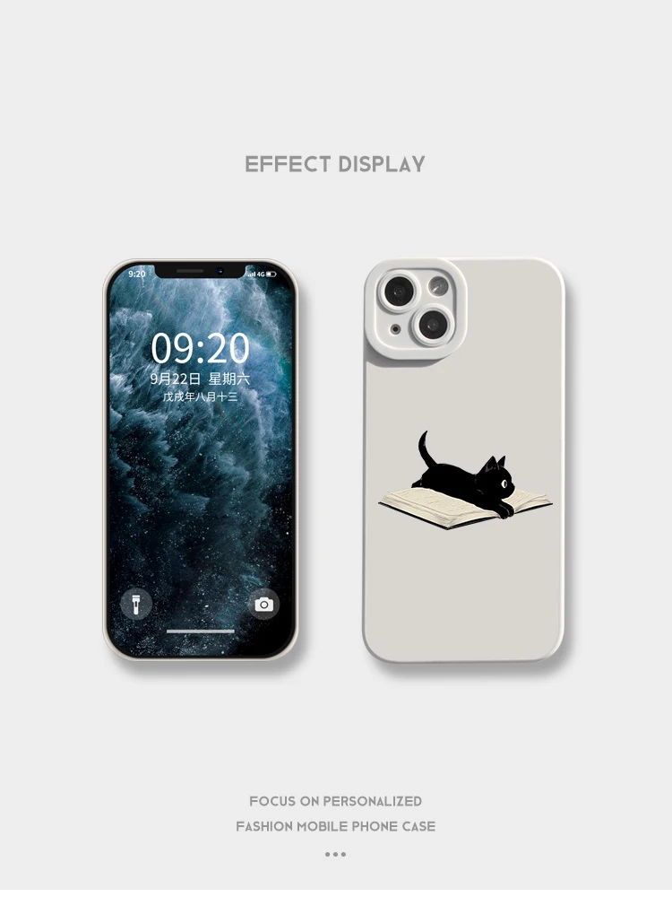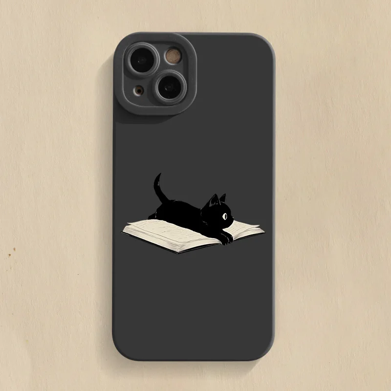 Simple Cat Pattern Phone Case For iPhone 11 12 13 14 Pro Max XS XR X 7 8 Plus SE 2020 Mini Shockproof Matte Soft Silicone Cover