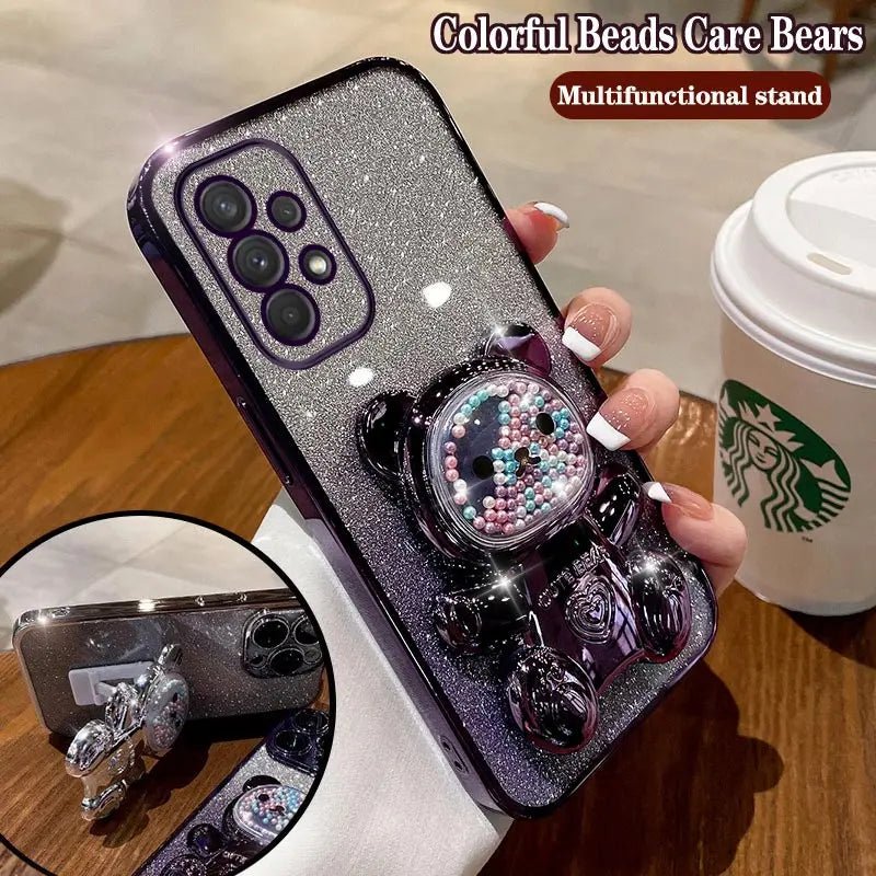 Cute Bear Colorful Flow Beads Plating Phone Holder Case For Samsung Galaxy A53 A52 A54 A24 A13 A14 A04S A34 A32 A82 A33 Cover